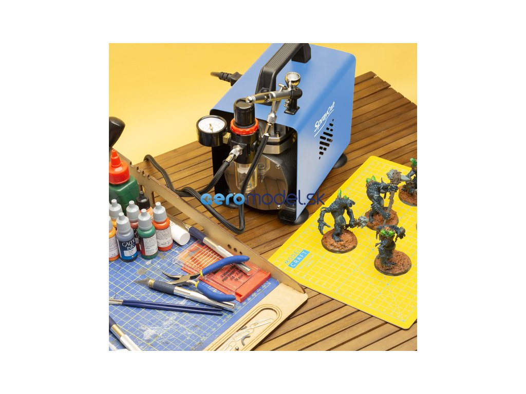 Výkonný kompresor Spraycraft Airbrush je kompaktní, tichý a poskytuje konzistentní proud vzduchu s integrovaným regulátorem tlaku a odlučovačem vlhkosti. Ideální pro všechny vaše potřeby v oblasti airbrush, stačí připojit stříkací pistoli (prodává se samostaně)!