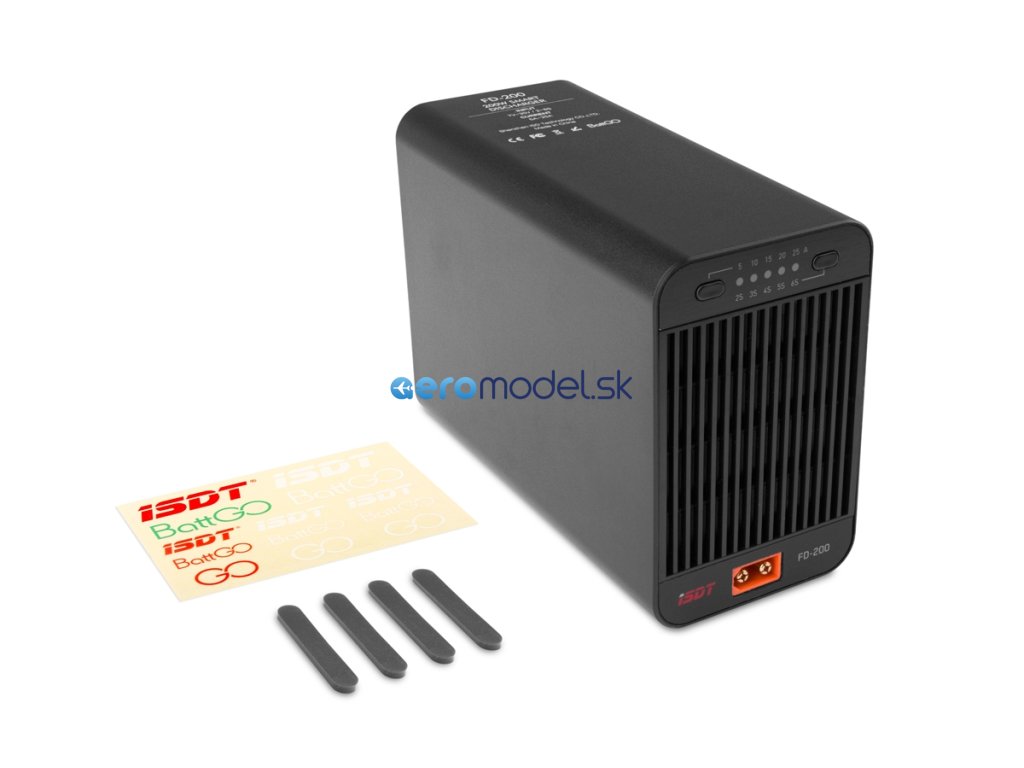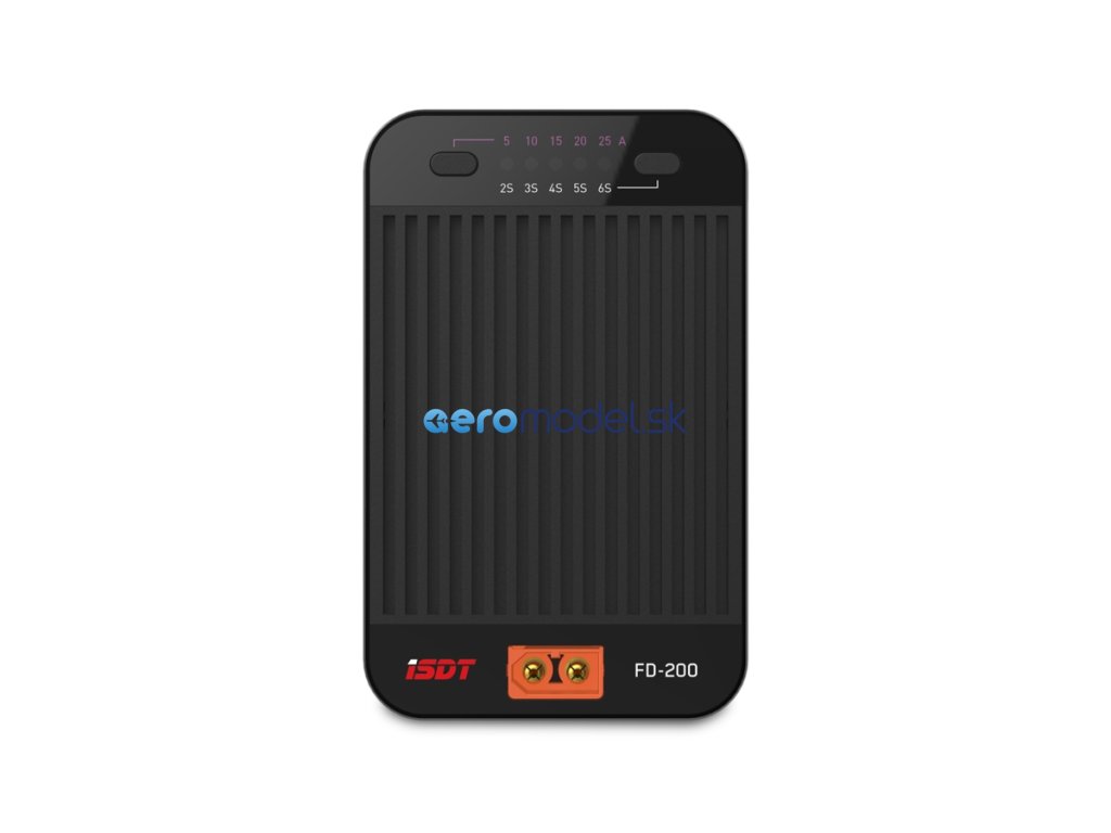 FD-200 je výkonný vybíječ, který umožňuje vybíjet lithiové akumulátory s 2-8 články (7-35 V) proudem 5-25 A (při max. výkonu 200 W). Je to ideální doplněk k nabíječům, které nedisponují funkcemi vybíjení nebo skladovacího vybíjení. pro bezdrátové nastvování parametrů je vybaven Bluetooth modulem umožňujícím připojení ke smartphonu s aplikaci isdGO (pro operační systémy Android i iOS).