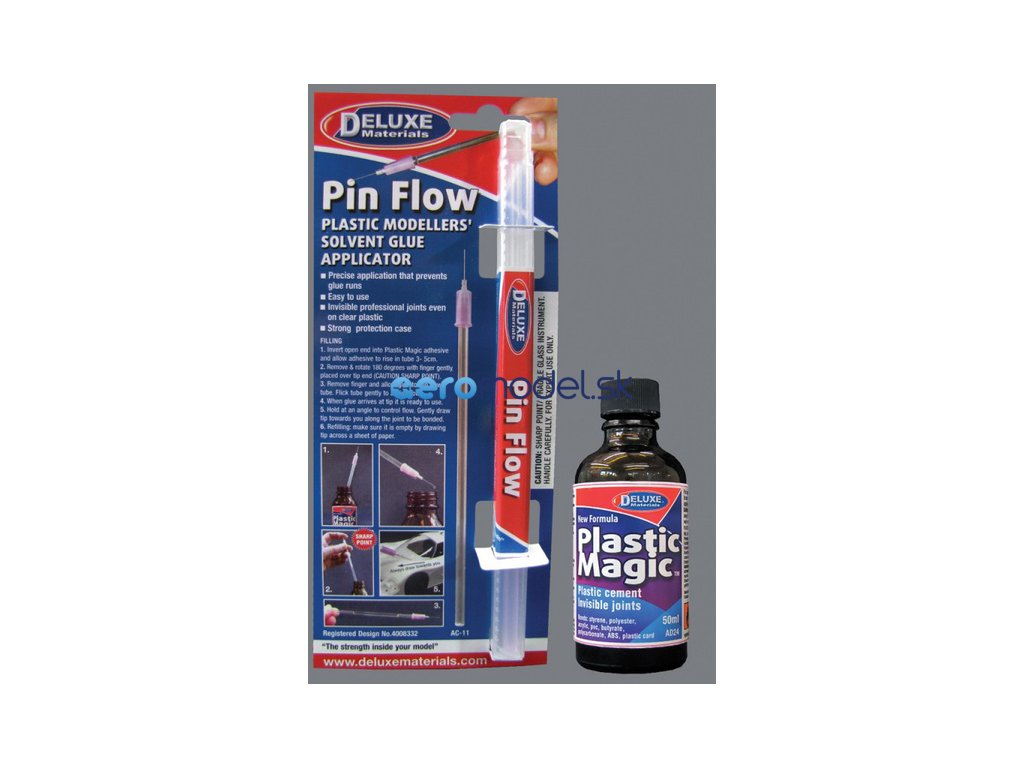 Jehlový aplikátor Pin Flow s trubičkou je určen pro precizní lepení plastikových modelů za použití lepidla Plastic Magic. Tento aplikátor umožňuje nanést to pravé množství lepidla a dosáhnout precizních neviditelných lepených spojů.