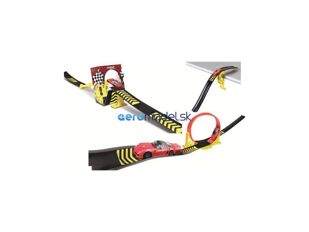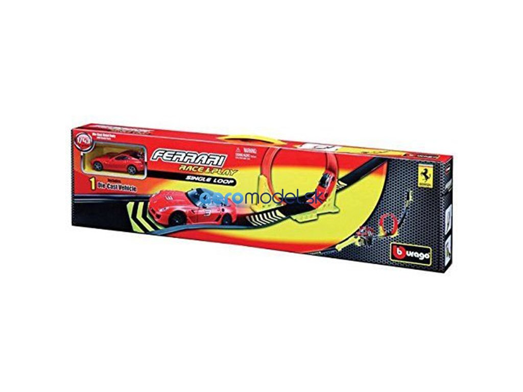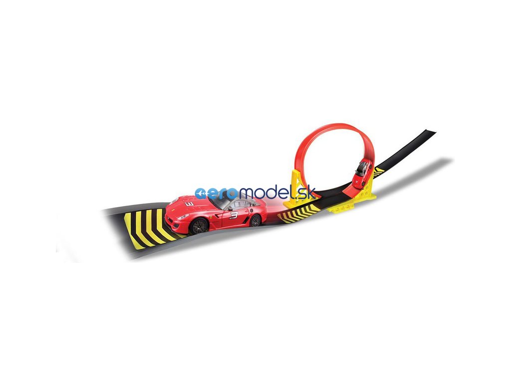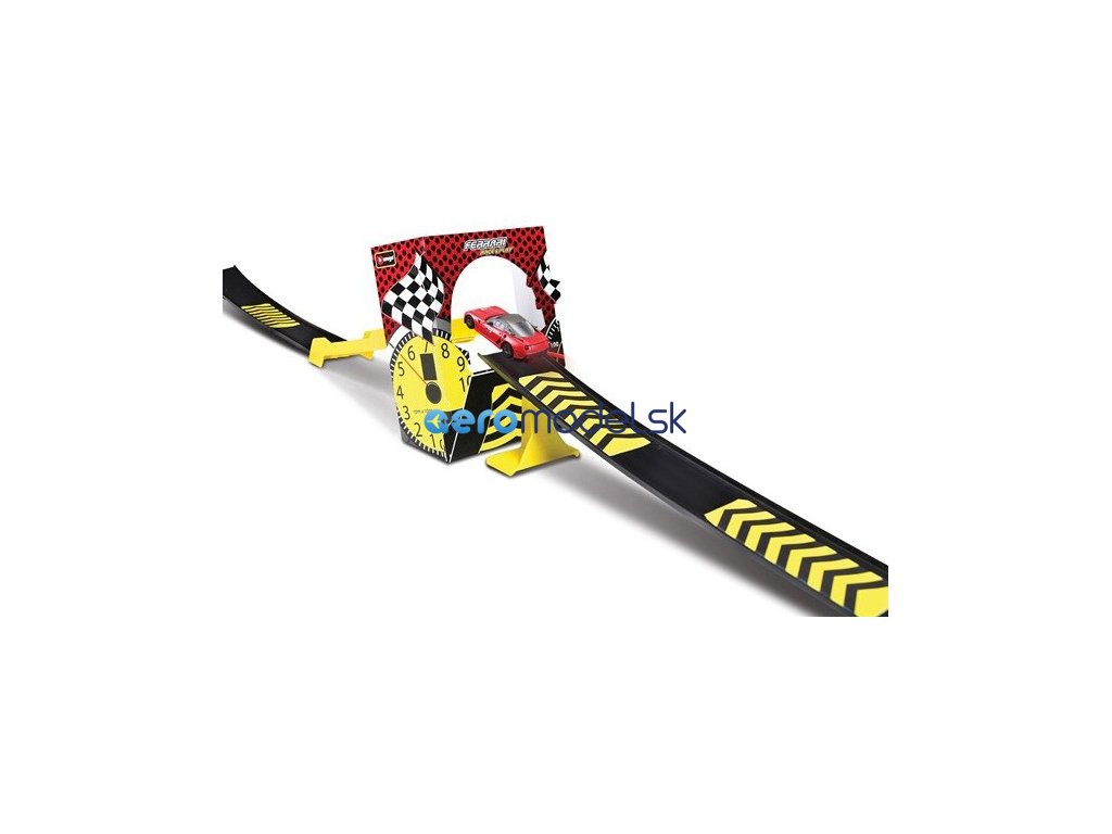 Uspořádej závody Ferrari aut ve svém pokojíčku ještě dnes. S touto závodní dráhou Bburago 18-31215 Ferrari Single Loop s autíčkem v měřítku 1:43 ( přibližně 10 cm velké ) si to pořádně užijete. Stačí připevnit trať třeba na hranu stolu díky utahovacímu držáku a spustit autíčko po trati dolů. Autíčko se rozjíždí z výšky díky tomu nabírá rychlost, aby cestou zvládl udělat lopink, ještě si skočí se skokánku a hurá do cíle.