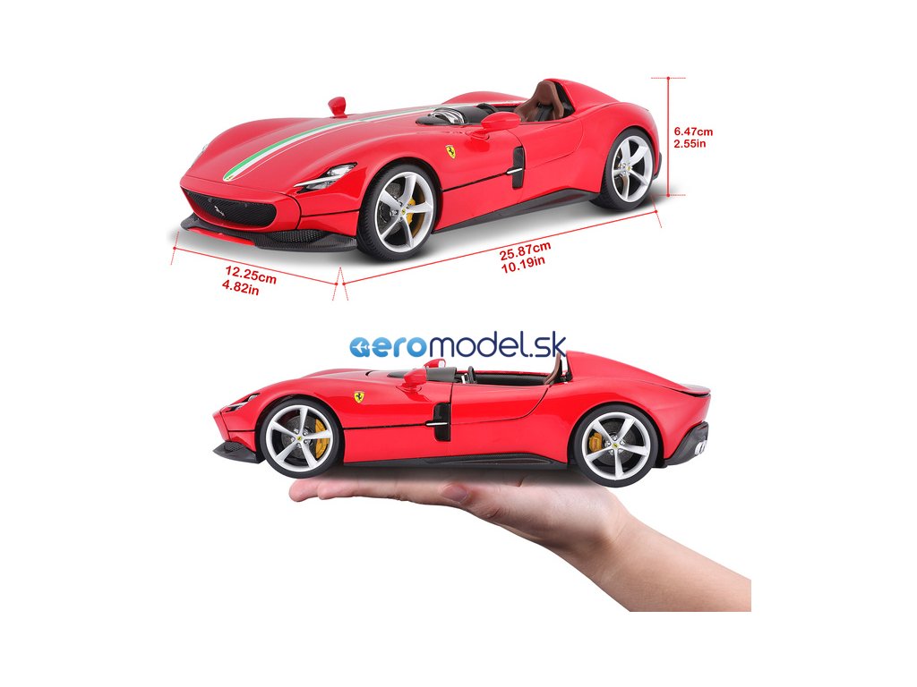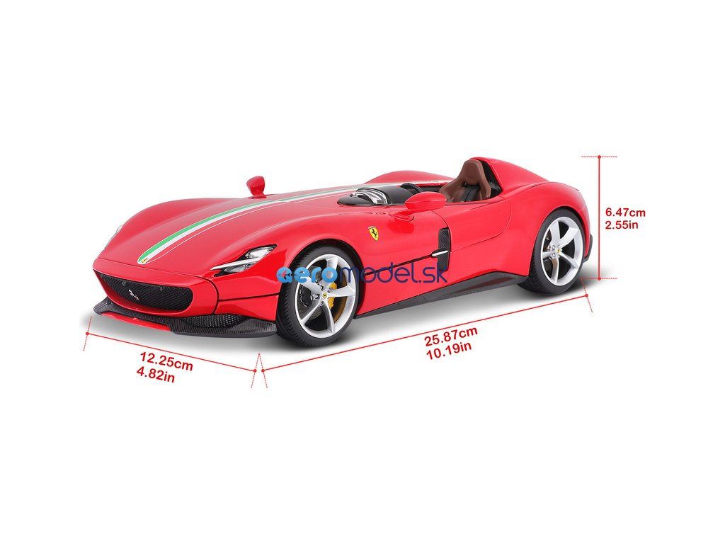 Kovový model auta 1:18 Bburago 18-16909 Ferrari Monza SP1 nielen pre zberateľov. Má odpruženú nápravu. Model je v špičkovej kvalite. Model je v najvyššej kvalite série Signature. Farba modelu je červená.