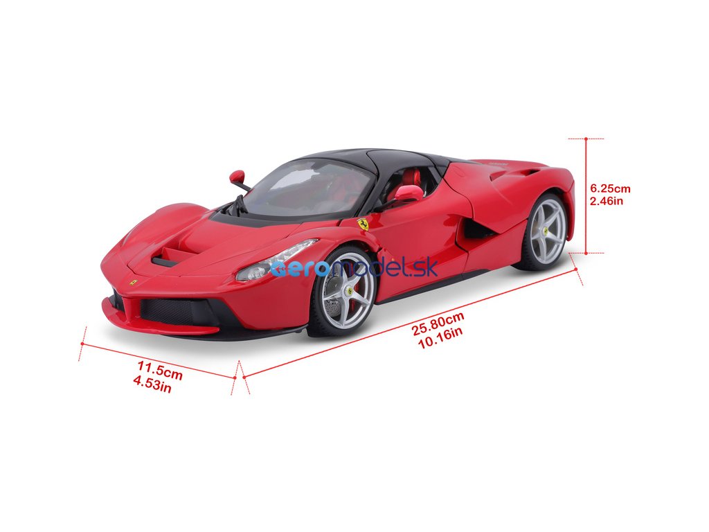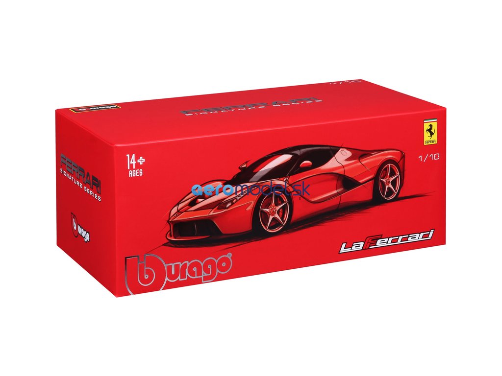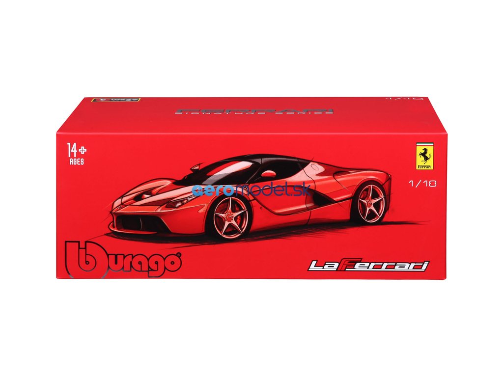 Kovový model auta 1:18 Bburago 18-16901 zn. LAFERRARI nielen pre zberateľov. Má otváracie dvere a kapotu, odpružené nápravy, otáčanie volantu je plne funkčné. Model je v najvyššej kvalite série Signature. Farba modelu je červená.