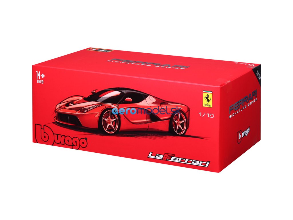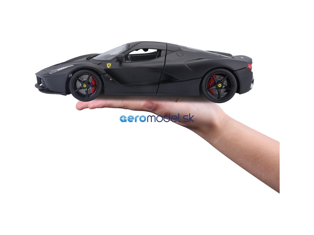 Kovový model auta Bburago 18-16901 Signature - Ferrari LaFerrari v mierke 1:18 je určený nielen pre zberateľov. Model má otváracie dvere a kapotu, odpružené nápravy, otáčanie volantu je plne funkčné. Model je v najvyššej kvalite série Signature. Farba modelu je čierna.