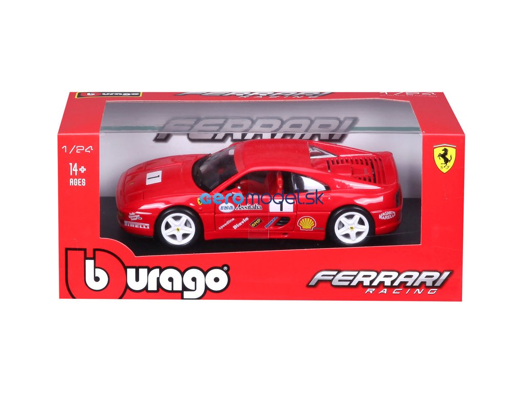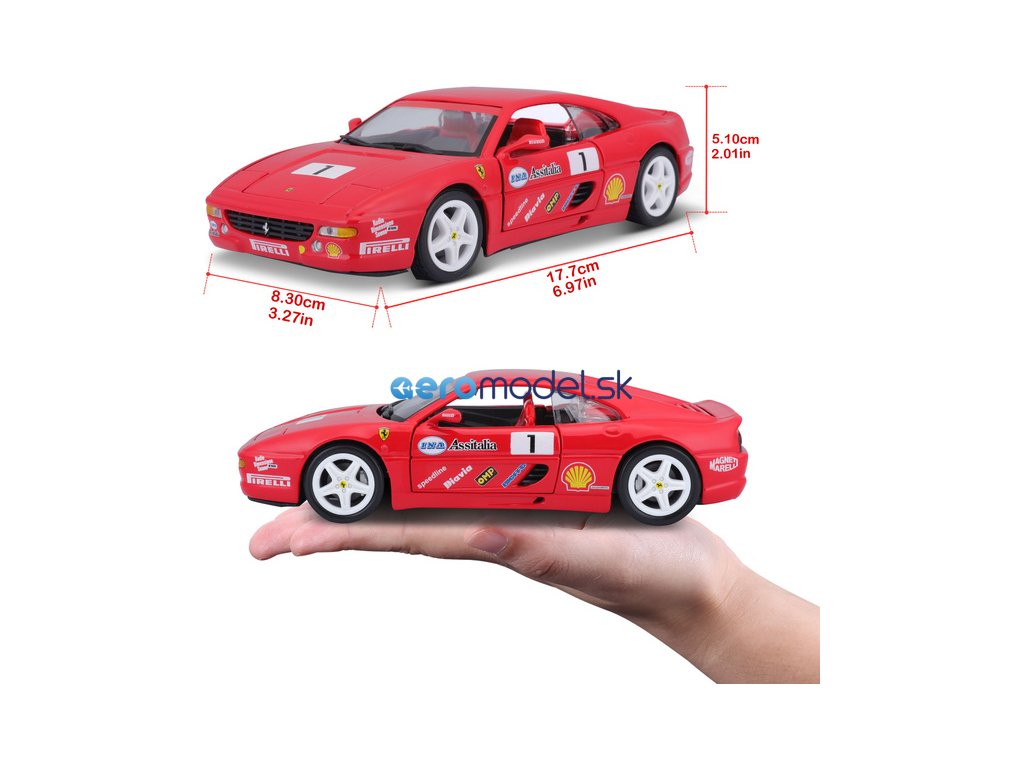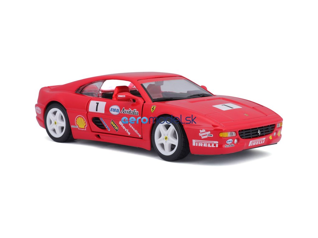 Kovový model auta 1:24 Bburago 18-26306, Ferrari Racing F355 Challenge, nielen pre zberateľov. Má otváracie dvere a je v detailnom prevedení. Farba modelu je červená.