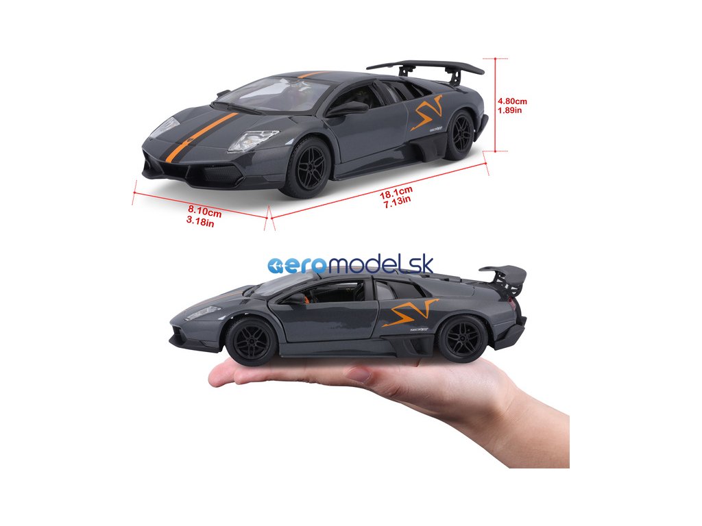 Model Bburago 18-22120 Lamborghini Murciélago LP 670-4 SV China Limited Edition v mierke 1:24 je určený nielen pre zberateľov. Má otváracie dvere a kapotu, otáčanie volantu je plne funkčné. Farba modelu je sivá metalíza.