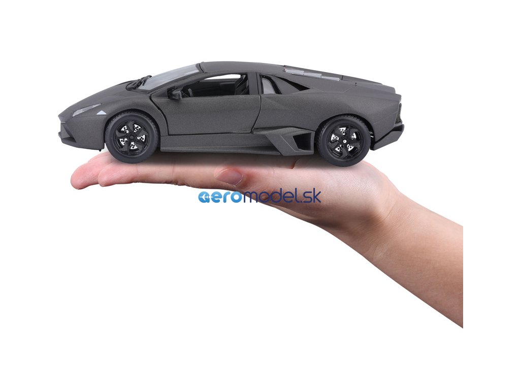 Kovový model auta Bburago 18-21041 Plus Lamborghini Reventón v mierke 1:24 je určený nielen pre zberateľov. Má otváracie dvere a kapotu, otáčanie volantu je plne funkčné. Farba modelu je sivá metalíza.