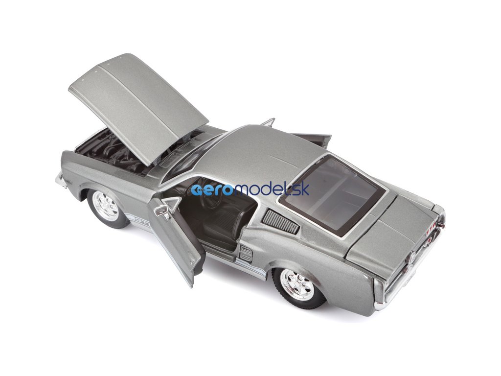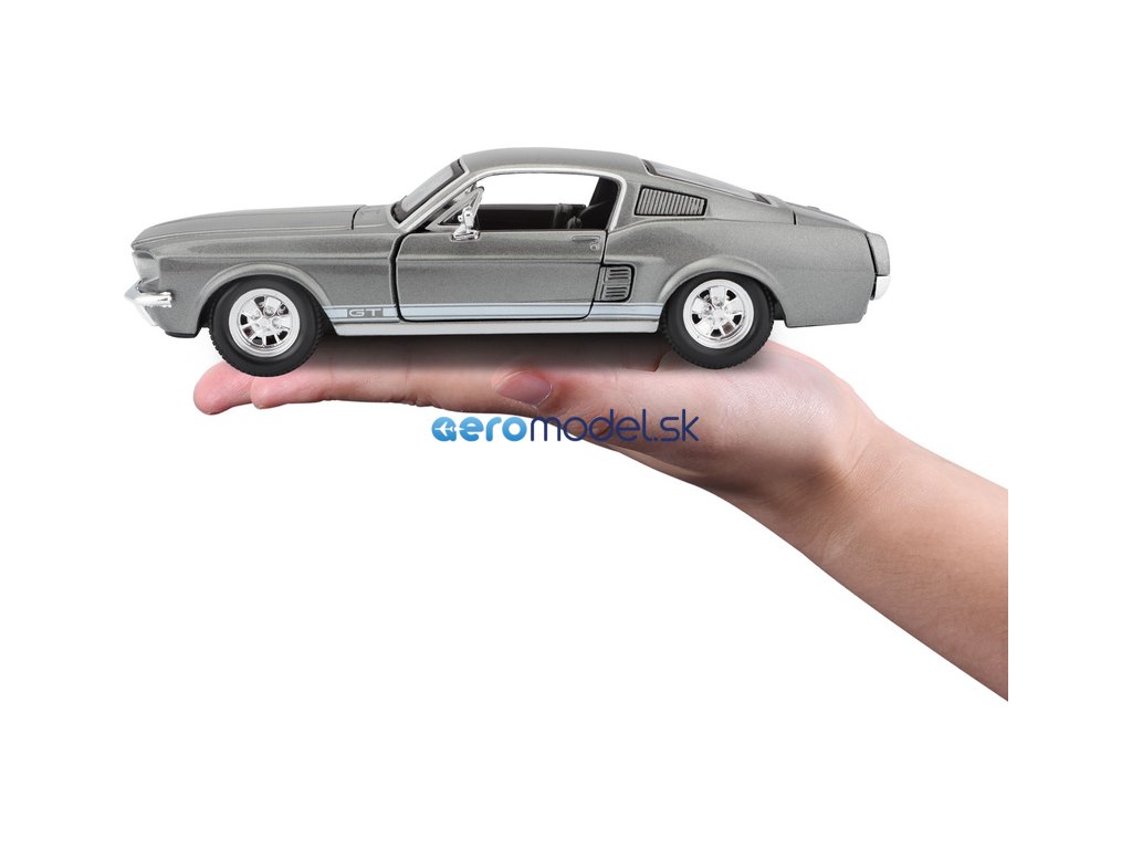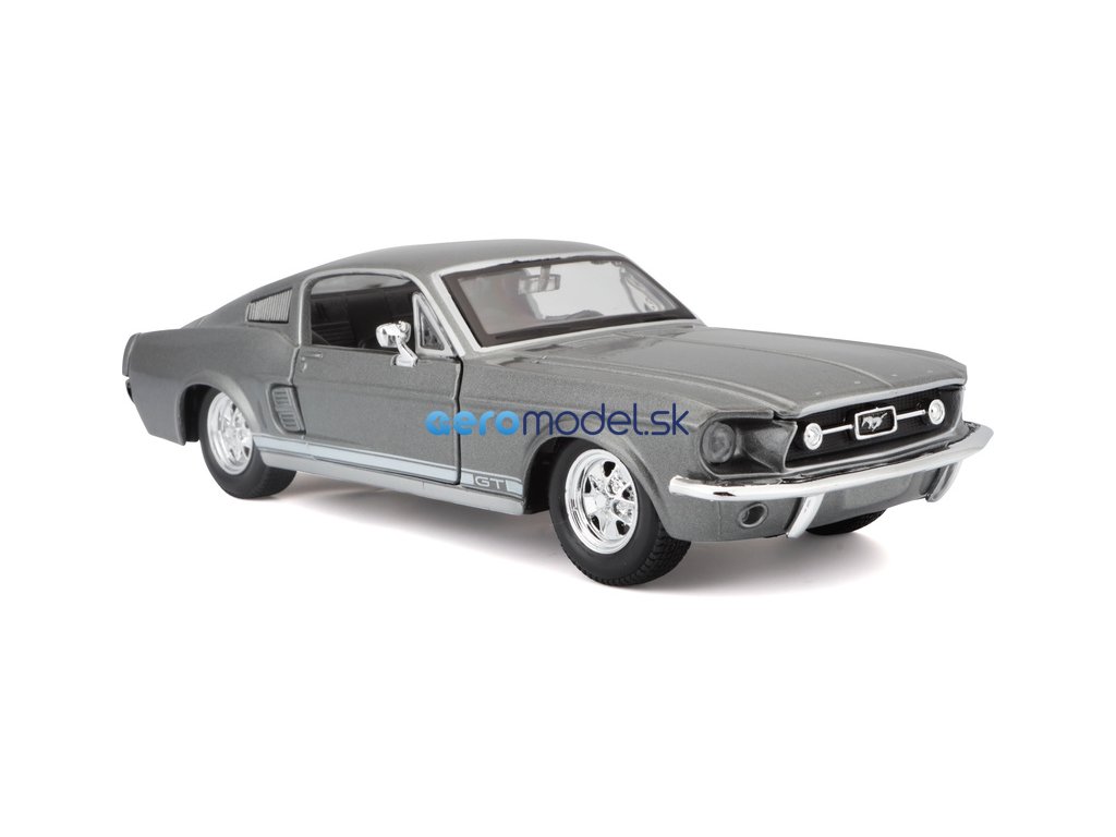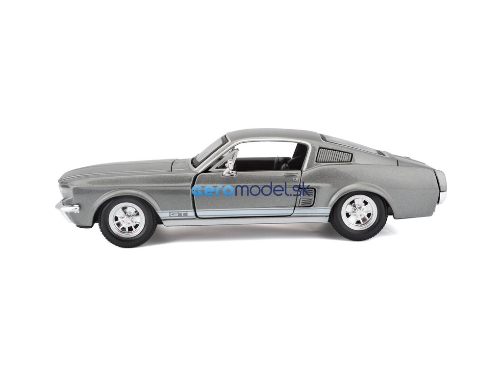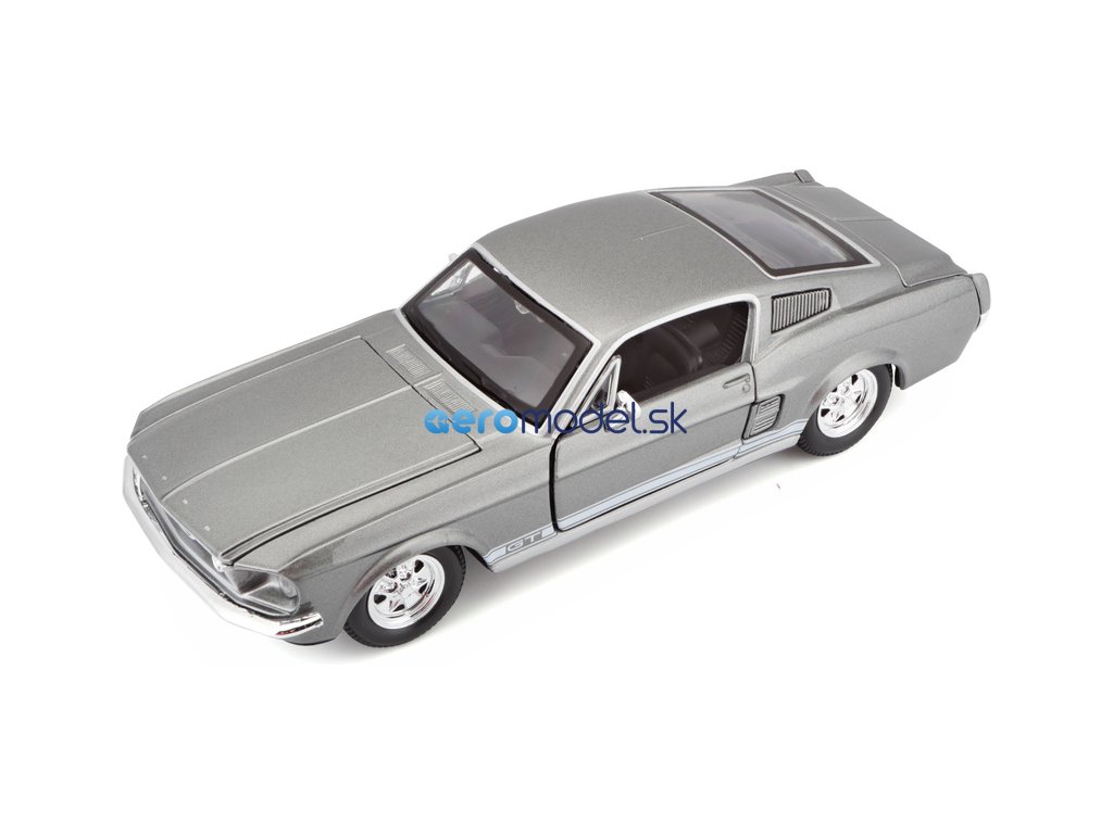 Kovový model auta 1:24 Maisto 31260 Ford Mustang GT 1967 nielen pre zberateľov. Model je v detailnom prevedení. Farba modelu je sivá metalíza.