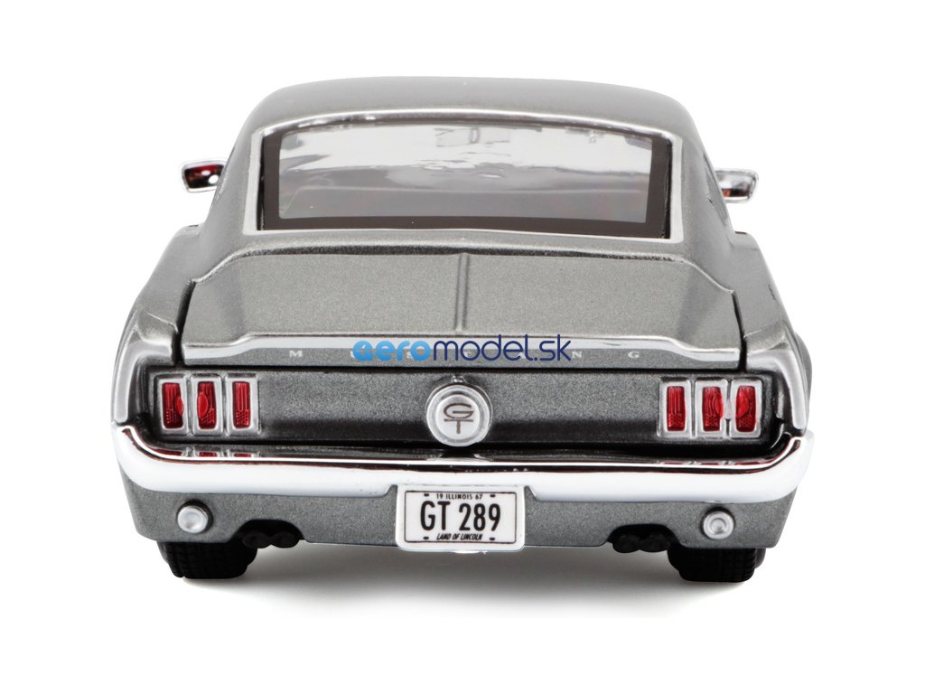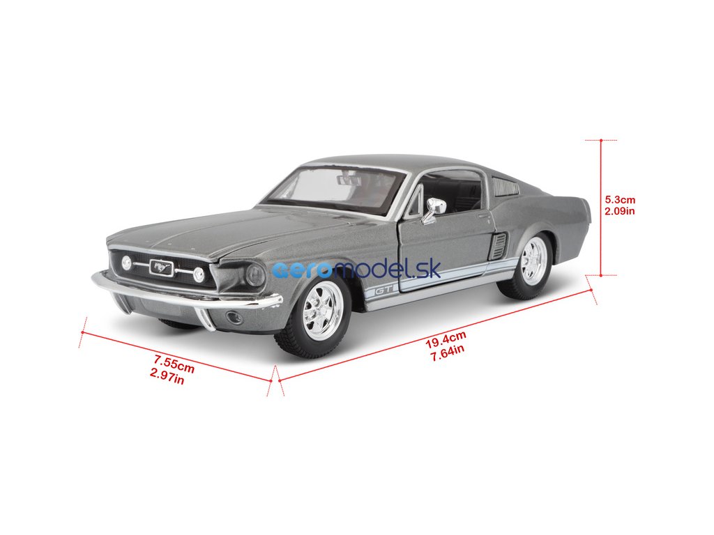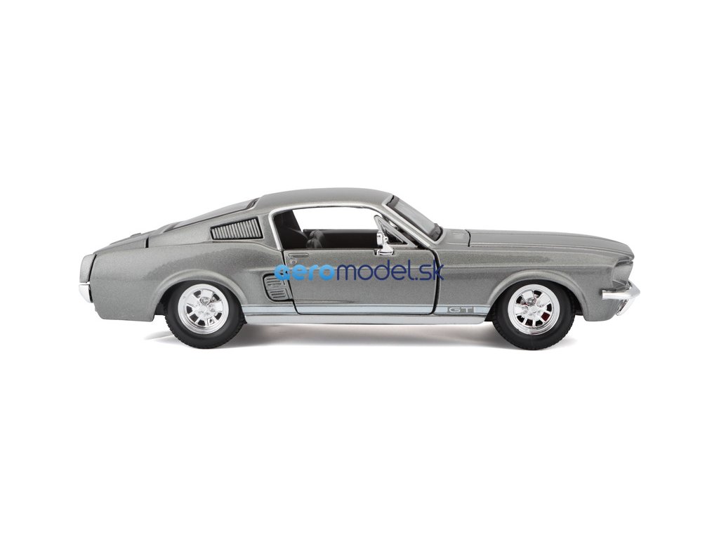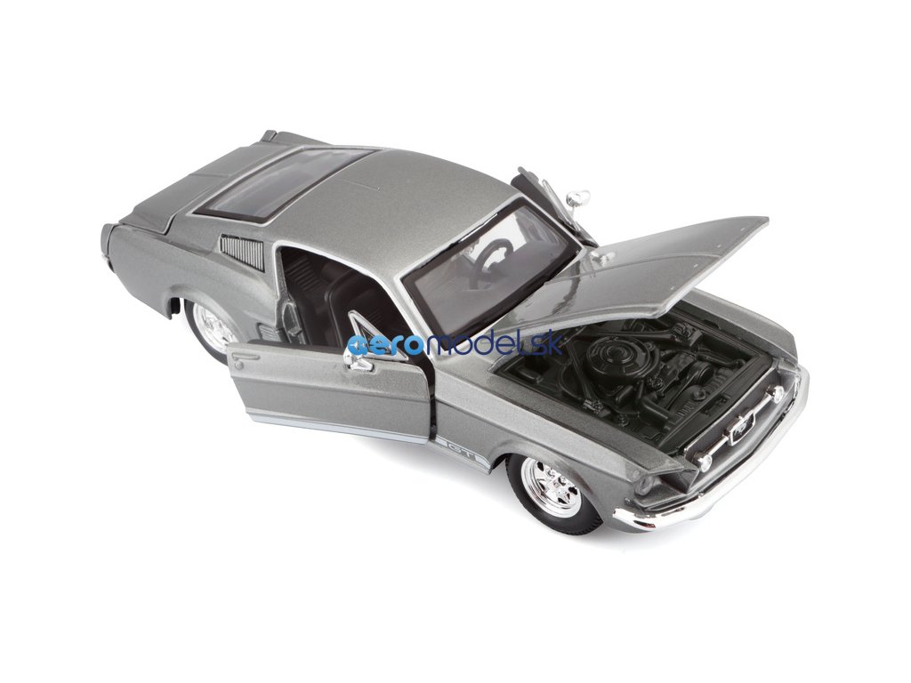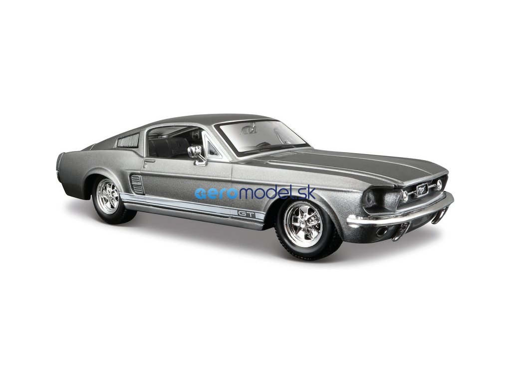 Kovový model auta 1:24 Maisto 31260 Ford Mustang GT 1967 nielen pre zberateľov. Model je v detailnom prevedení. Farba modelu je sivá metalíza.
