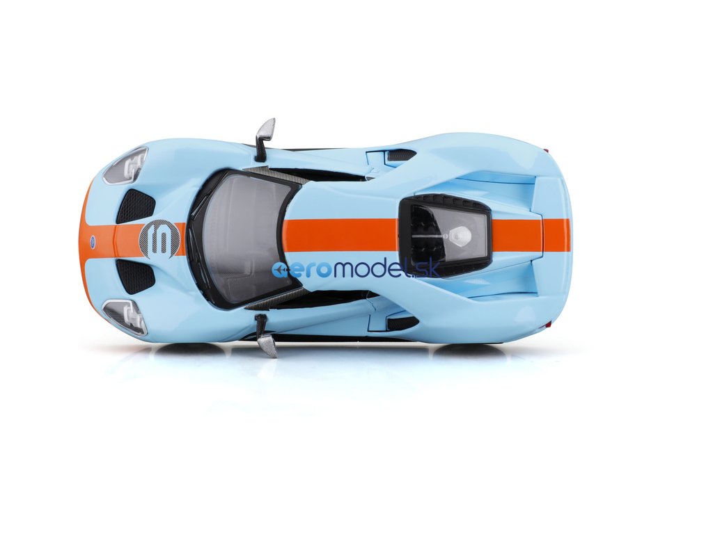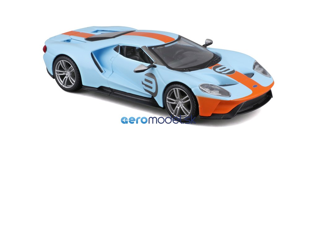 Kovový model auta 1:32 Bburago 18-41164 Ford GT 2019 #9 Heritage Edition nielen pre zberateľov. Model je v modrej farbe s pretekárskym číslom.