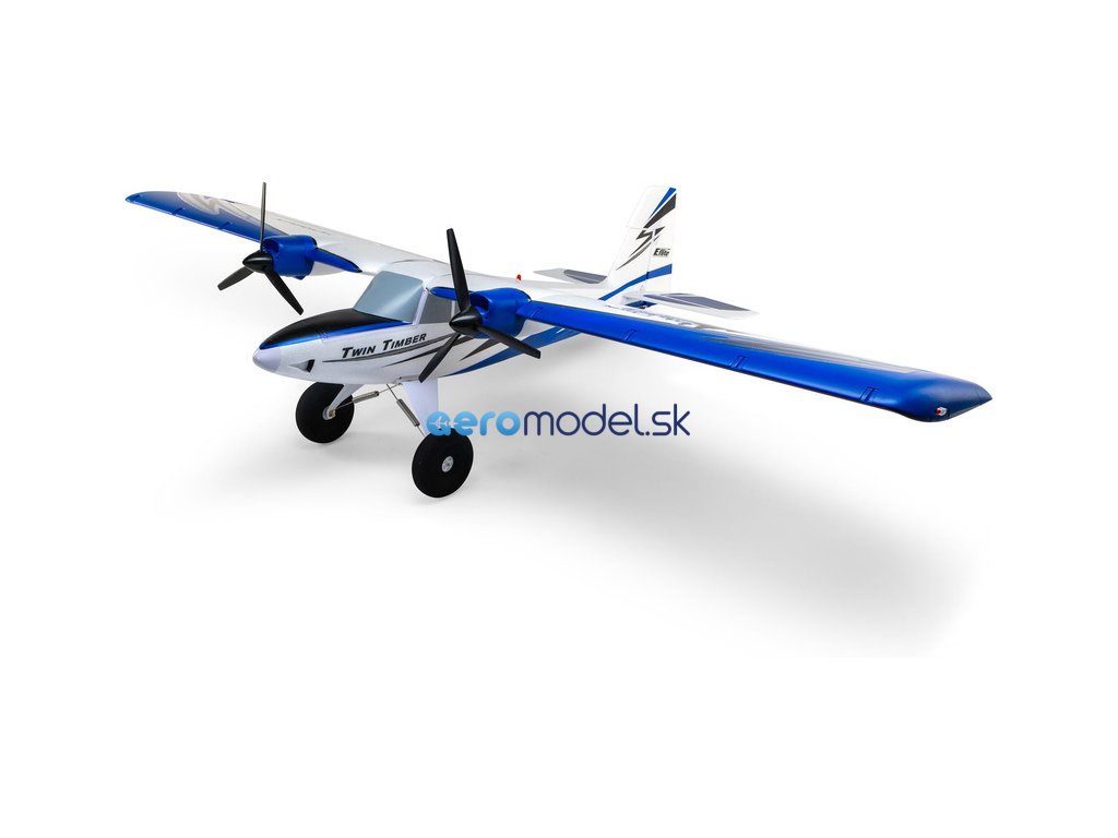 RC model dvojmotorového lietadla E-flite Twin Timber BNF Basic SAFE Select s rozpätím krídel 1,6 m, poháňaný dvojicou striedavých motorov s nastaviteľným striedavým duálnym regulátorom. Model má akrobatické schopnosti, klapky a voliteľné sloty pre krátky vzlet a pristátie. Pre 3S - 4S LiPol akumulátory.