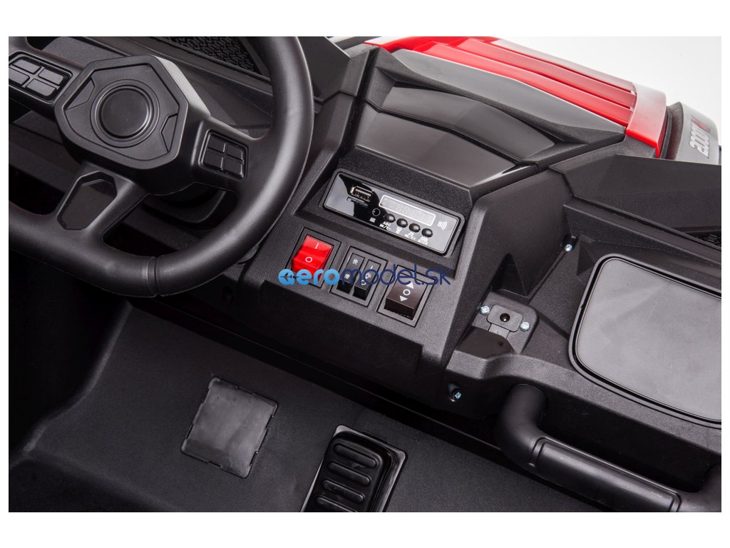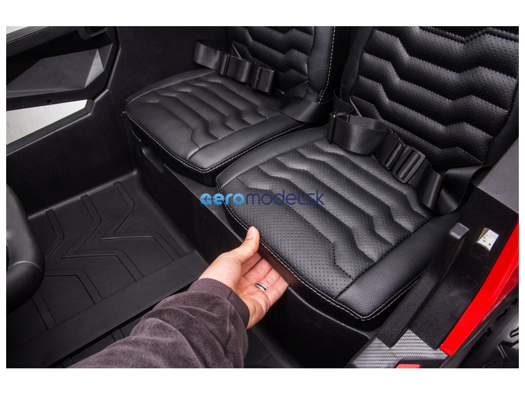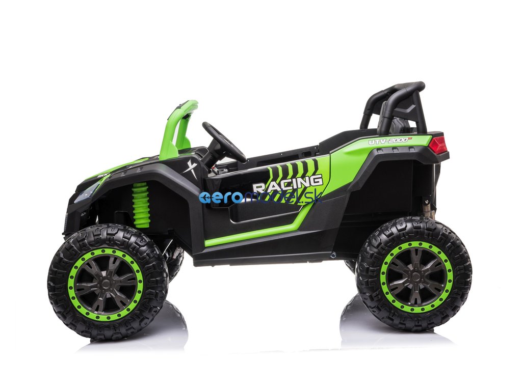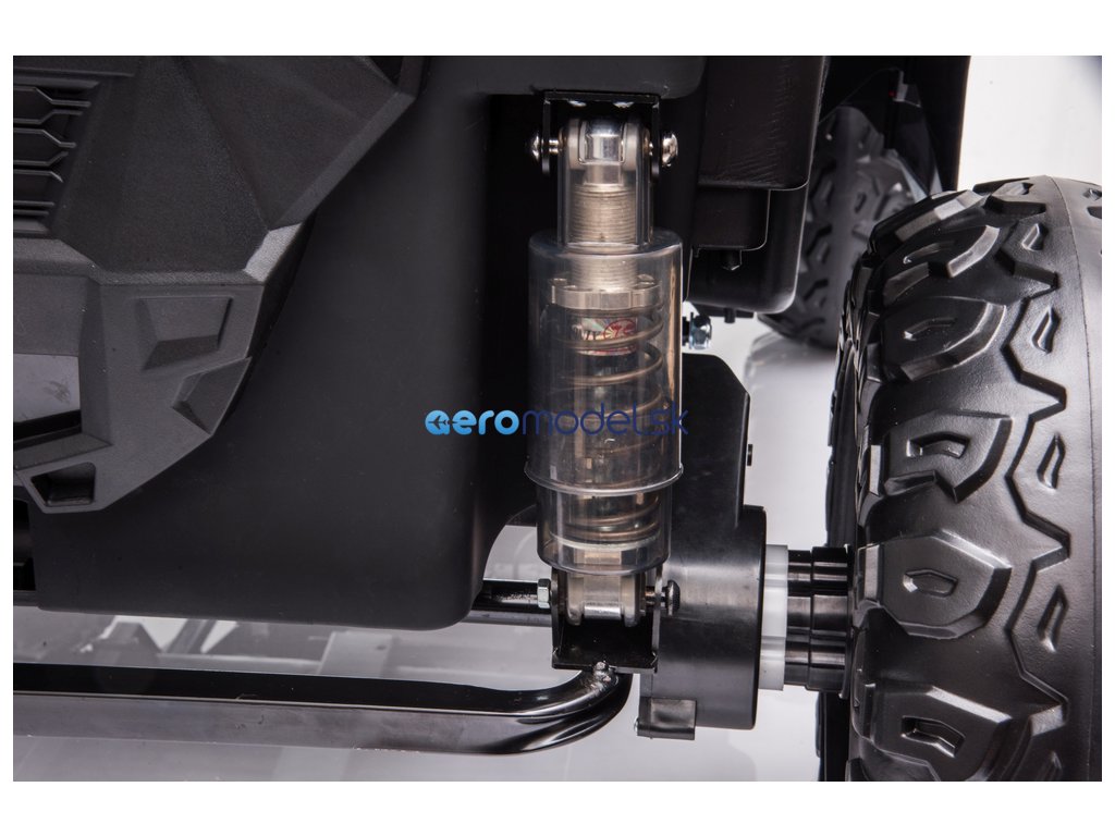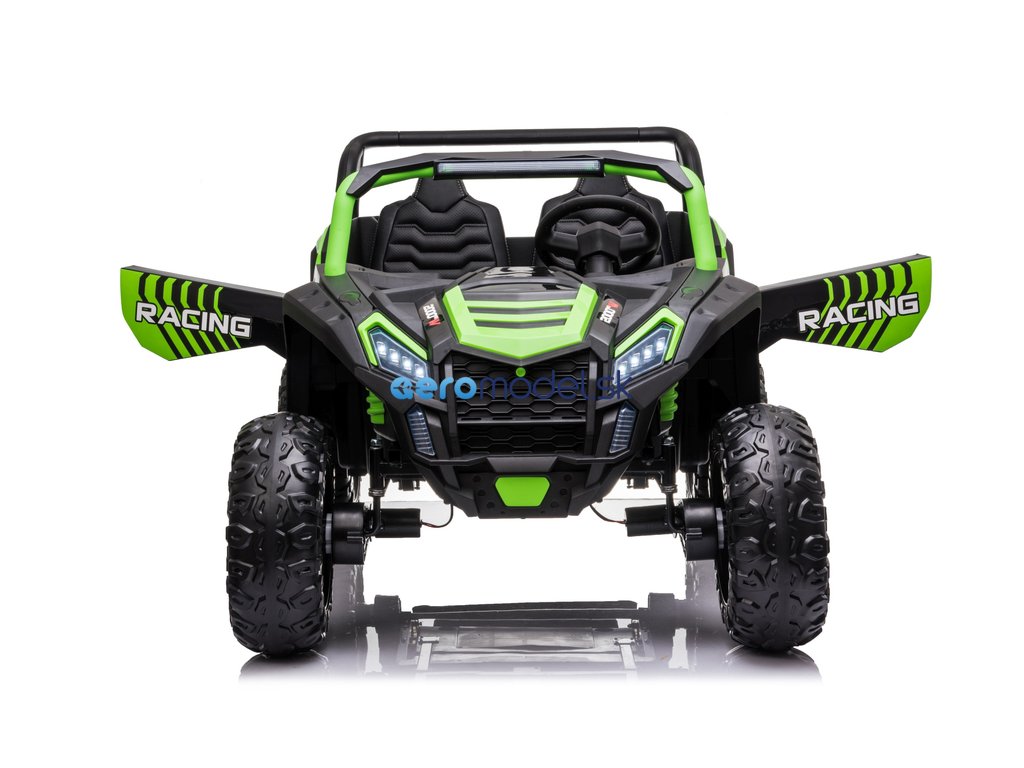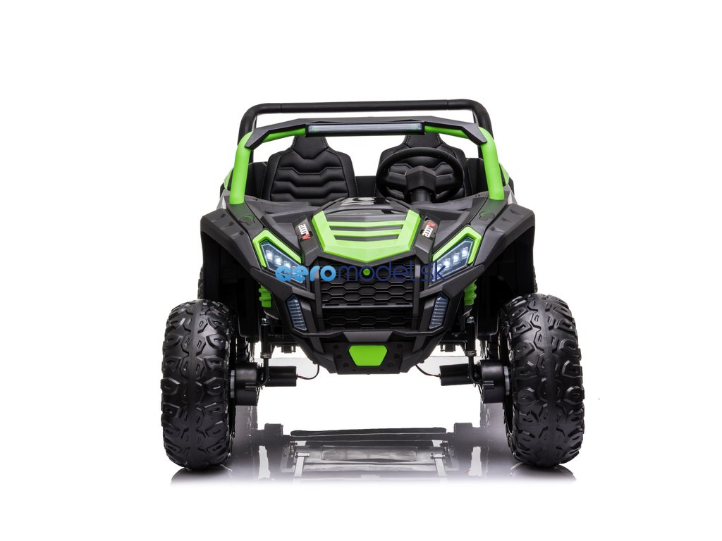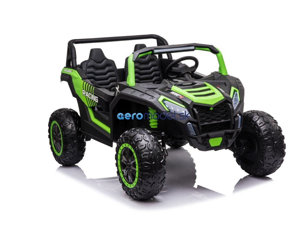 Elektrická bugina pre deti je poháňaná 2x200W motormi a 24V 7Ah batériou. Vďaka 3-stupňovej prevodovke vie vyvinúť rýchlosť 6 až 9 km/h. Na bugine sa dajú otvárať dvere, zapínať predné aj zadné svetlá či dokonca prehrávať hudba. Sedačka je vyrobená z príjemnej ekokože. Maximálna nosnosť je 60kg.