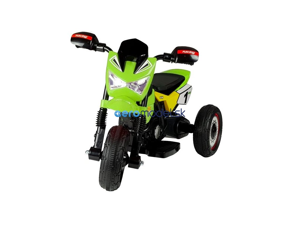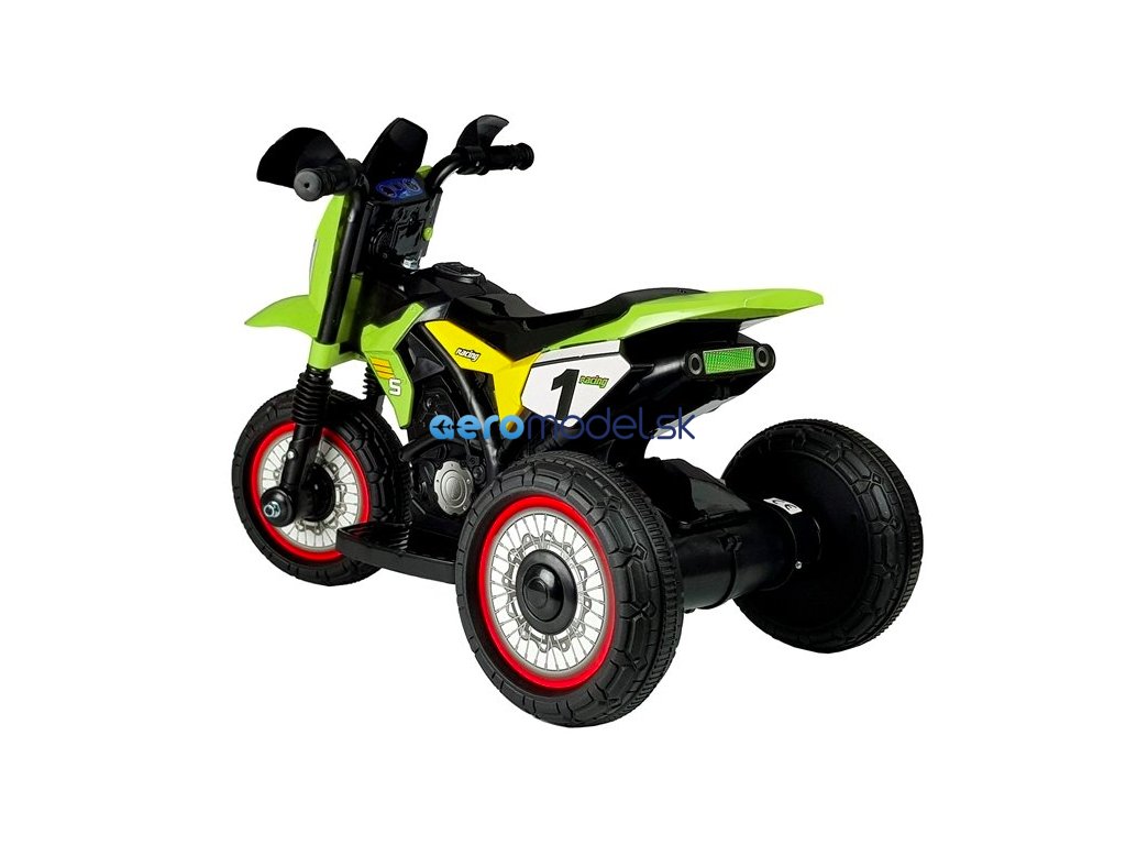 Motorka je poháňaná motorom s výkonom 35 W umiestneným v zadnej náprave, ktorý poháňa obe kolesá. Trojkolka je vybavená prepínačom, ktorý vám umožňuje voliť vpred, vzad alebo v kľude. Vozidlo má plastové kolesá s gumeným pásom zlepšujúcim priľnavosť k zemi. Motor má tiež LED osvetlenie vo forme predného svetla.