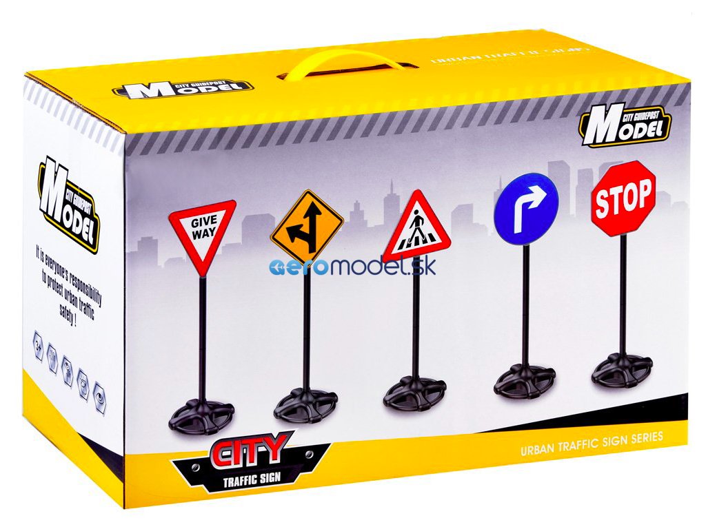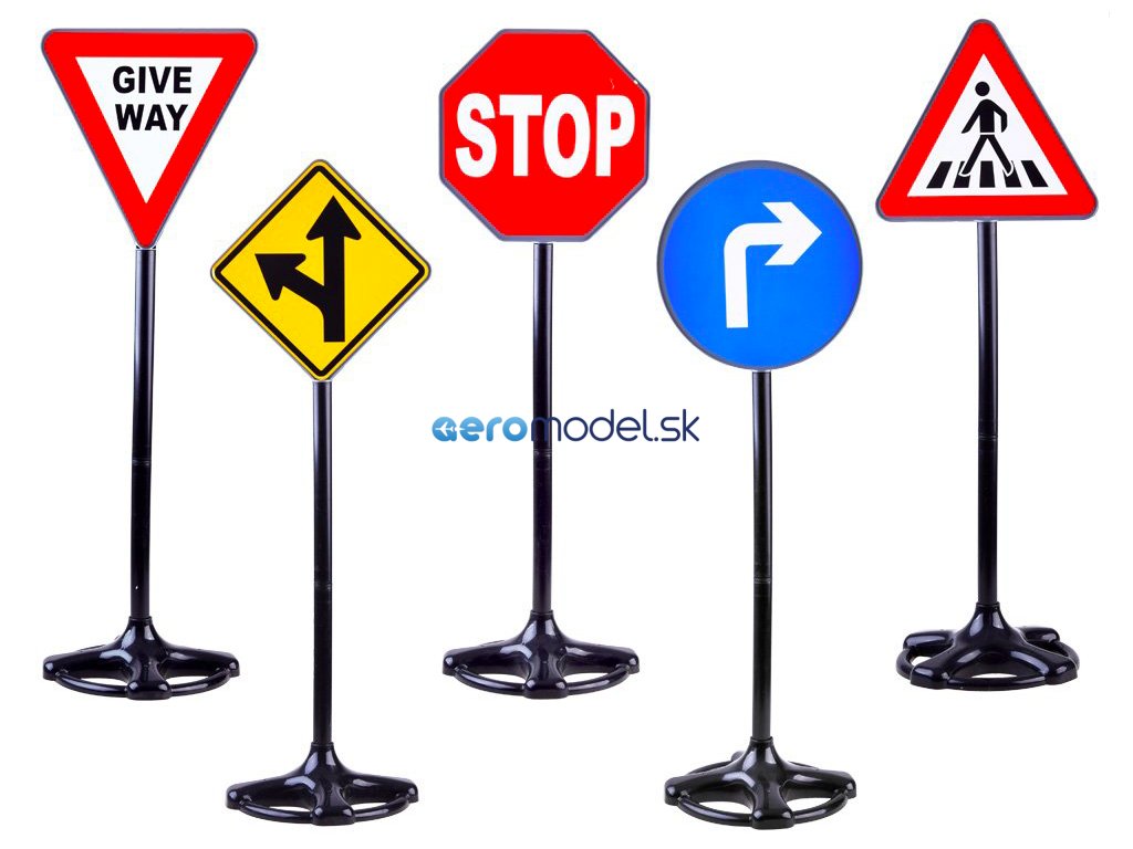 Sada sa skladá z 5 kusov plastových značiek označujúcich pravidlá pohybu na ceste.