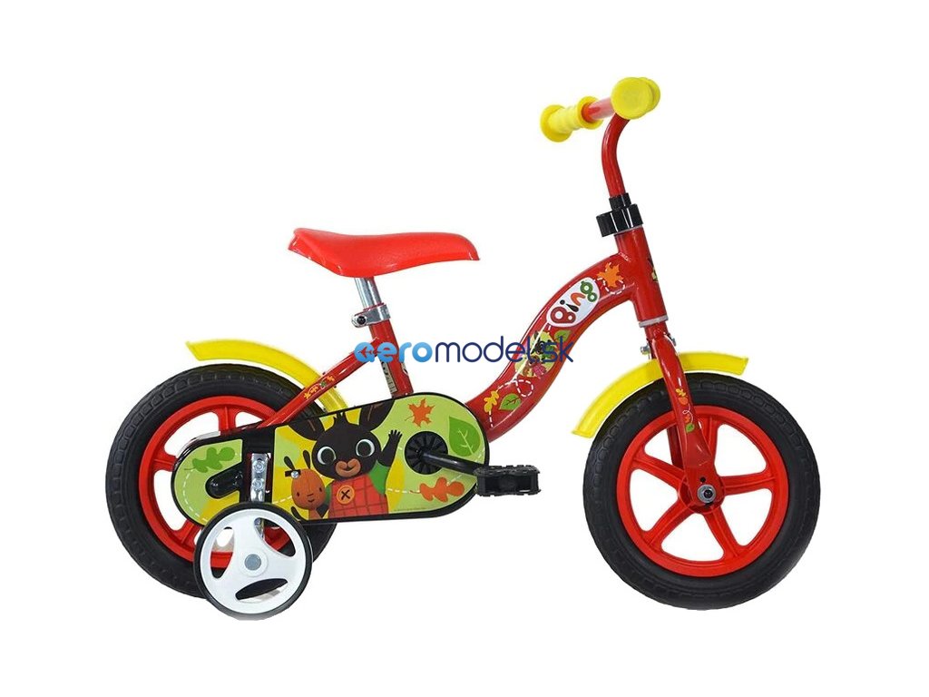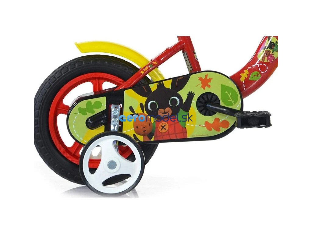 Dětské kolo DINO Bikes - 10" s licencovaným motivem pohádkového králíčka Binga s flopem. Od Italského výrobce kol. Kolo má ráfek s plnou pneumatikou bez dohušťování, stálý převod bez brzdy, je vybaveno pomocnými kolečky.