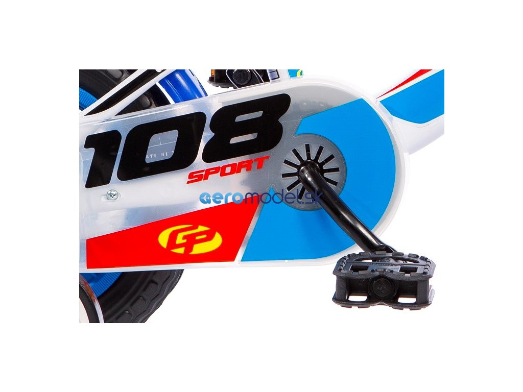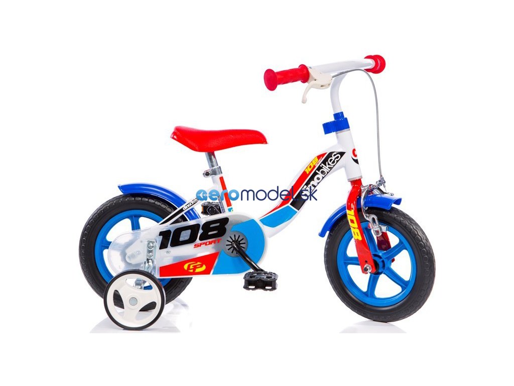 Dětské kolo Dino Bikes 108FLB pro nejmenší děti, které se chtějí naučit jezdit kole. Ráfek s plnou pneumatikou bez dohušťování, kolo má přední čelisťovou brzdu, stálý převod a je vybaveno pomocnými kolečky.
