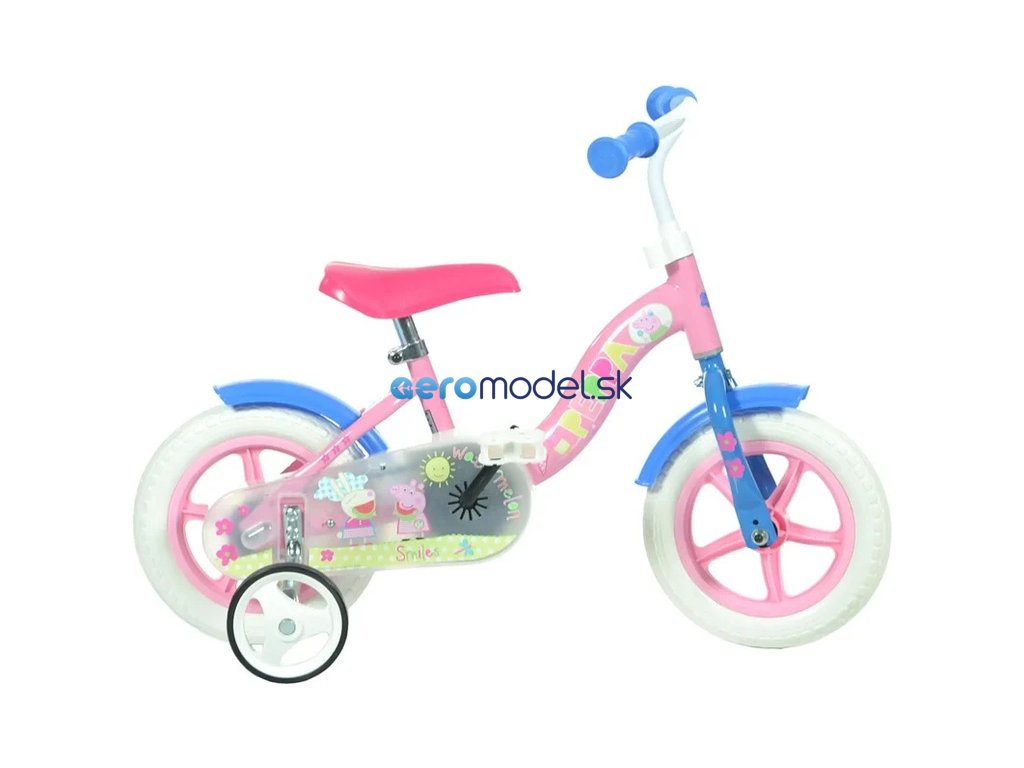 Dětské kolo DINO Bikes - Dětské kolo 10" Pepa Pig, výrobce Dino Bikes Italy pro nejmenší děti, které se chtějí naučit jezdit kole. Ráfek s plnou pneumatikou bez dohušťování, bez brzdy, stálý převod (furtšlap), kolo je vybaveno pomocnými kolečky.