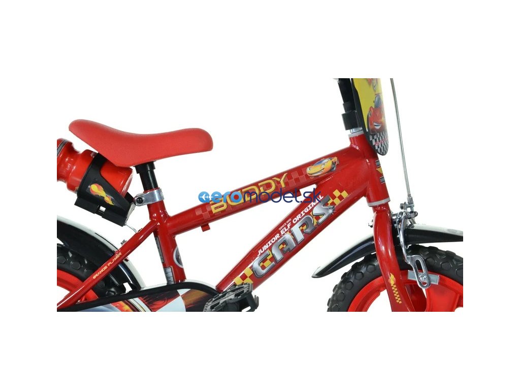 Dětské kolo DINO Bikes - 12" Cars, kolo pro malé závodníky a příznivce filmu Auta. Plastový ráfek s plnou pneumatikou (není třeba dohušťovat), přední čelisťová brzda, stálý převod, držák na lahev a ochranný kryt řetězu. Doporučený věk a výška dítěte: 2-4 roky, 87-120 cm.