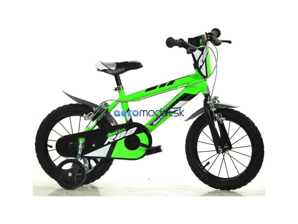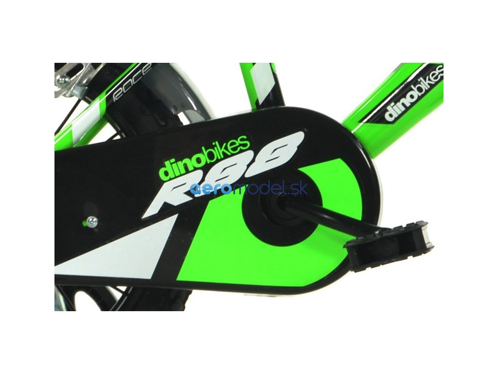 Dětské kolo DINO Bikes - 16" zelené, kolo pro malé závodníky. Kvalitní, vzduchem plněné pneumatiky s drátovým výpletem ráfků, volnoběžný převod, čelisťové brzdy na obě kola.