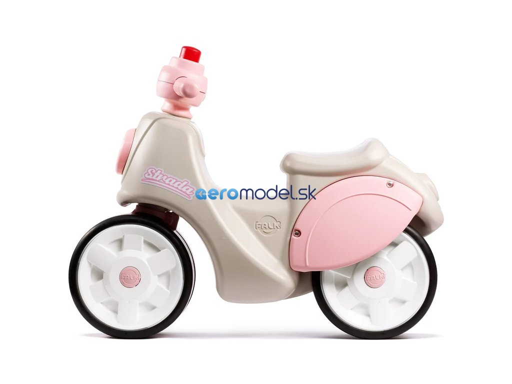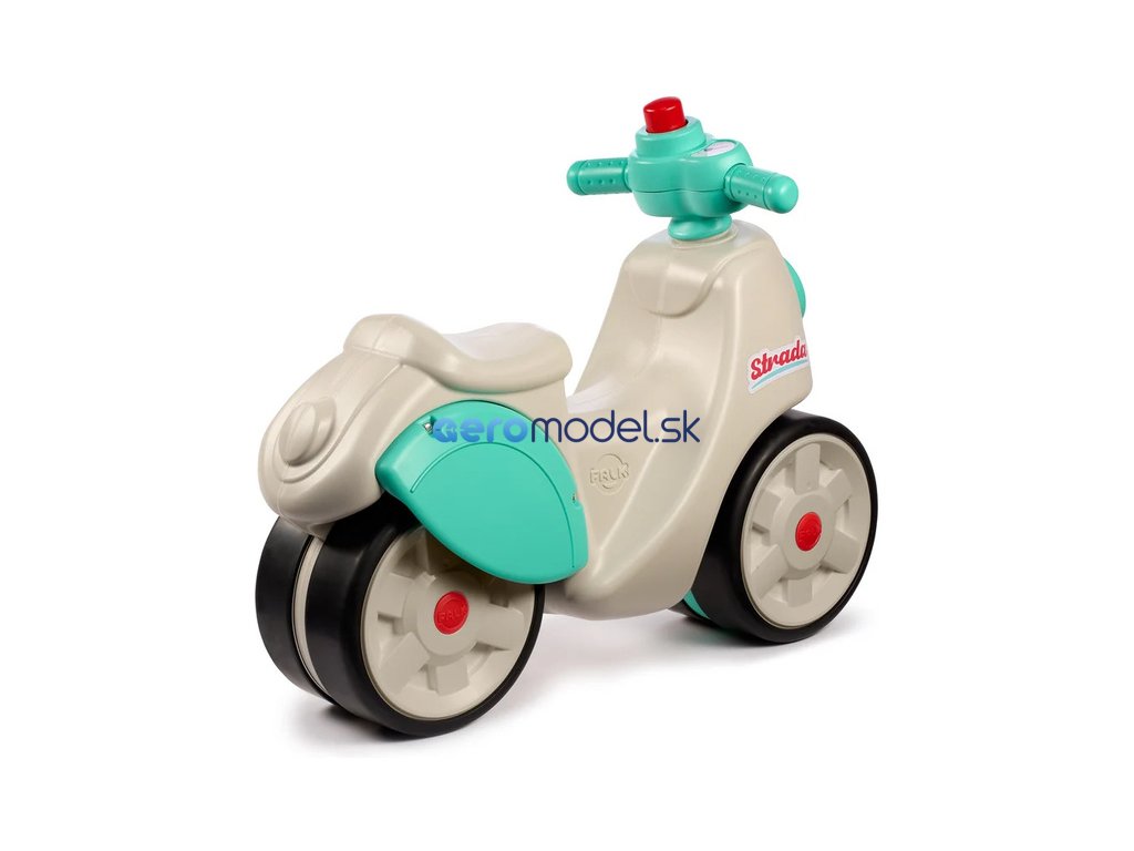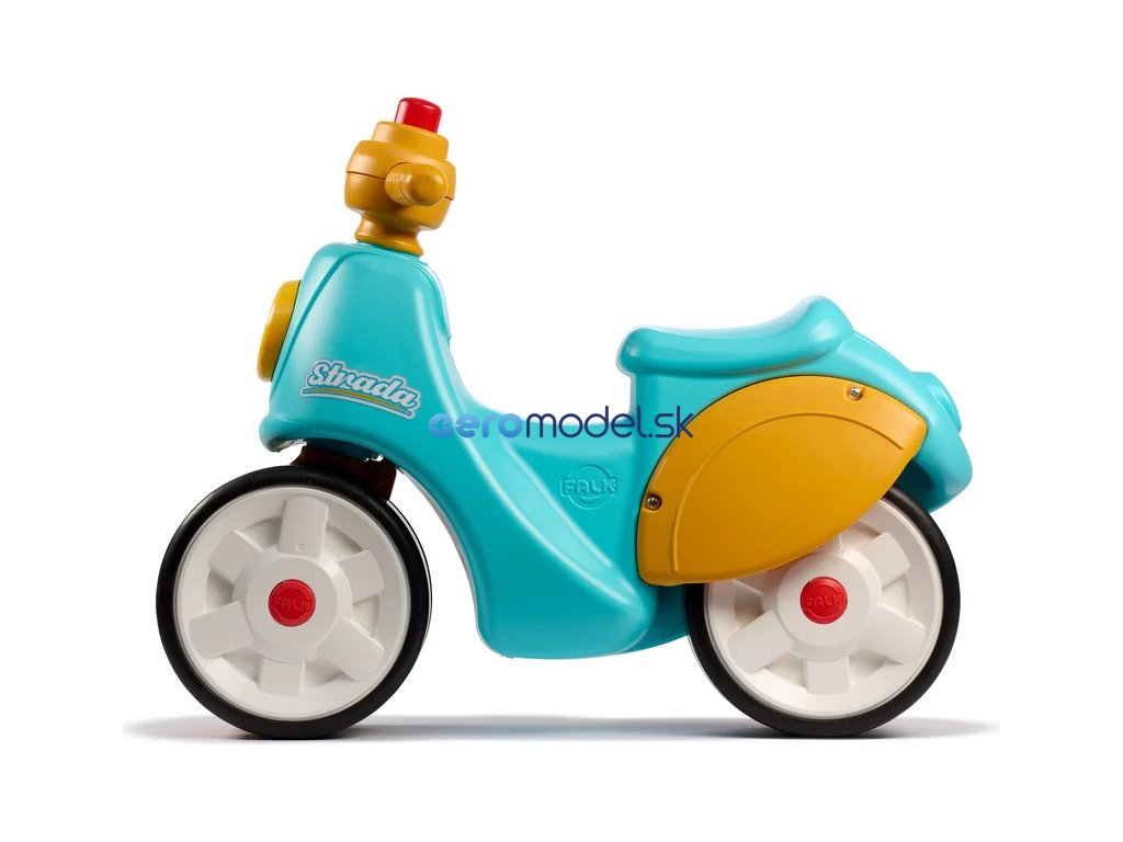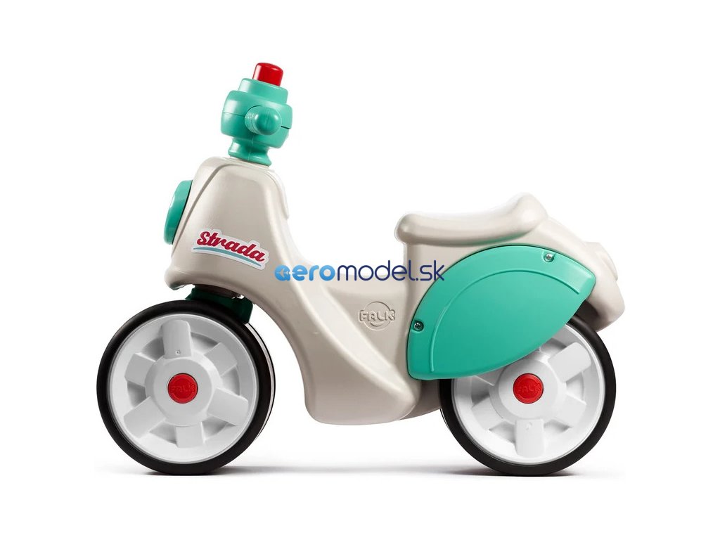 Dětské odrážedlo Strada, od francouzského výrobce FALK - ve tvaru stylové retro skútru. Vyrobeno z vysoce kvalitního odolného plastu s ohledem na bezpečnost dětí. Díky elastomernímu povlaku je odrážedlo odolnější vůči poškrábání. Široká kola pro stabilitu a postupné rozvíjení rovnováhy. Funkční řídítka pomáhání s rozvinutím jízdních dovedností. Funkční klakson na řídítkách. Pro děti od 1 do 3 let.