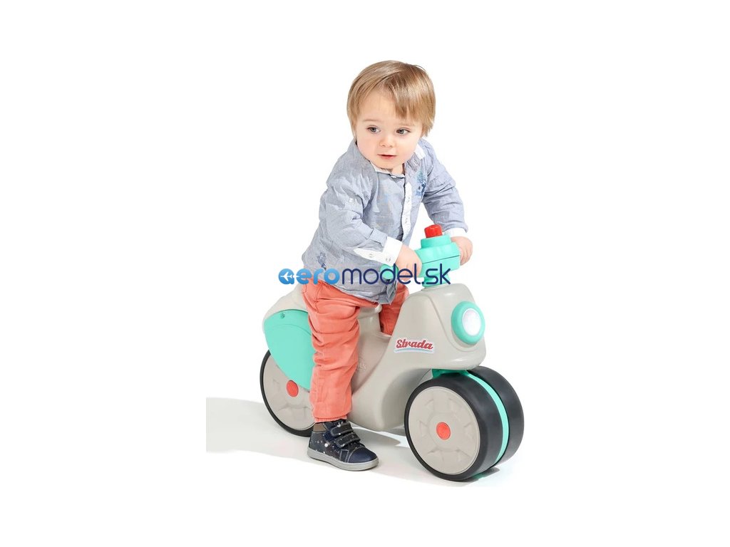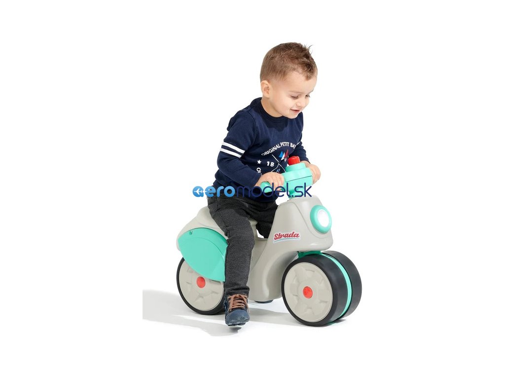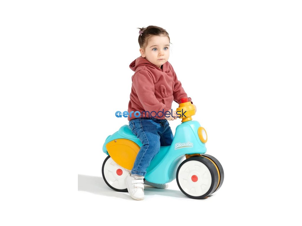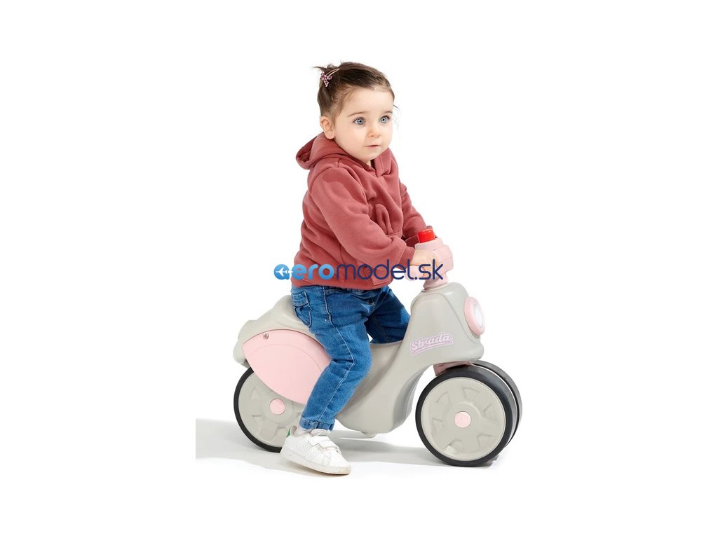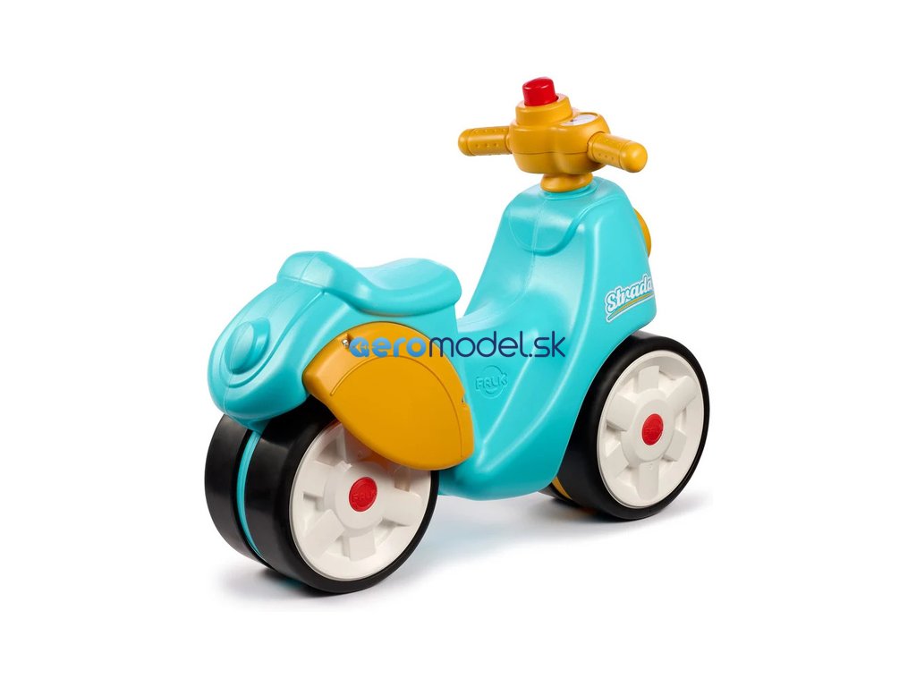 Dětské odrážedlo Strada, od francouzského výrobce FALK - ve tvaru stylové retro skútru. Vyrobeno z vysoce kvalitního odolného plastu s ohledem na bezpečnost dětí. Díky elastomernímu povlaku je odrážedlo odolnější vůči poškrábání. Široká kola pro stabilitu a postupné rozvíjení rovnováhy. Funkční řídítka pomáhání s rozvinutím jízdních dovedností. Funkční klakson na řídítkách. Pro děti od 1 do 3 let.