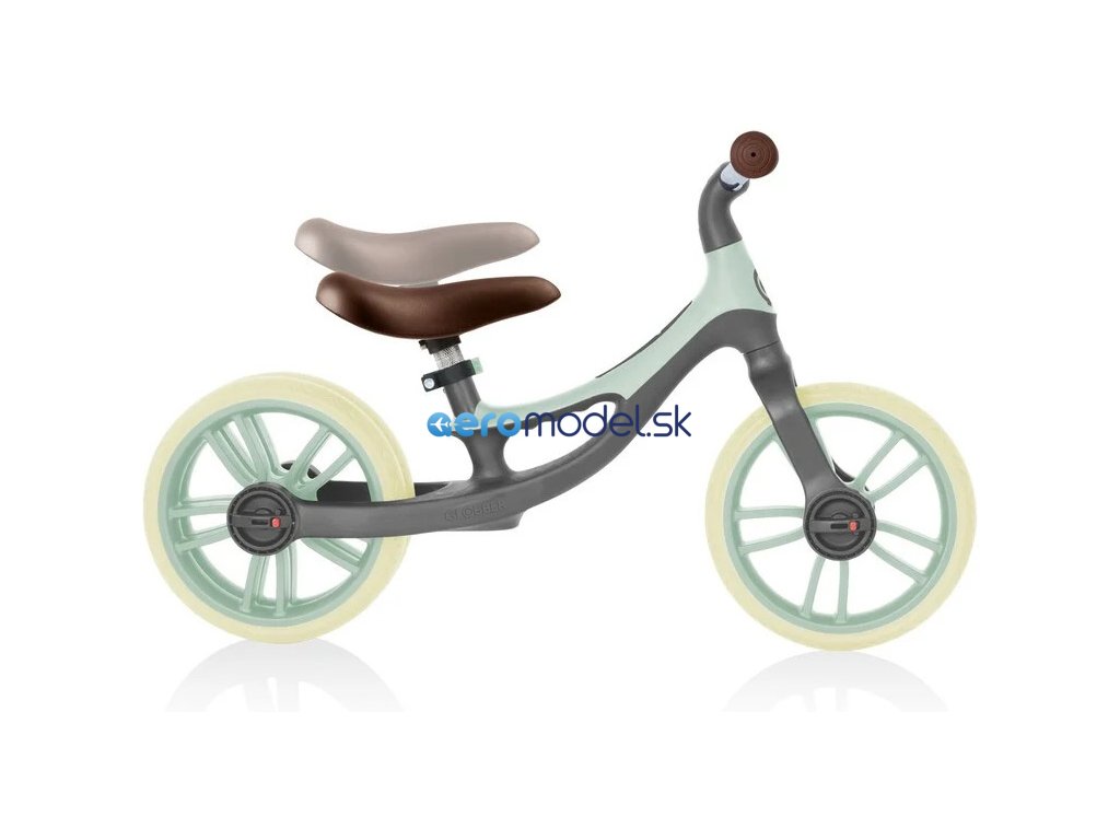 Dětské odrážedlo Globber Go Bike Elite Duo pro naučení jízdy a rovnováhy. Dvojité zadní kolo pro stabilitu, gumová kolečka TPE, integrovaná rukojeť pro přenášení, nastavitelná výška sedla. Pohodlné sedlo a měkké rukojeti. Vhodné od 2 do 5 let.