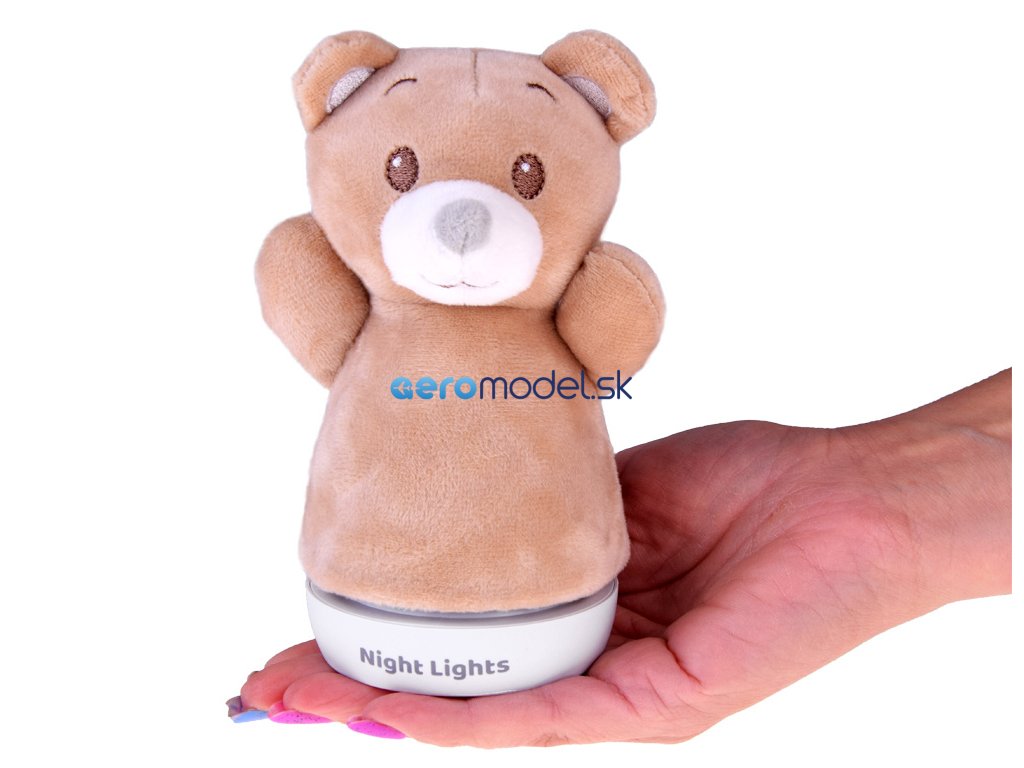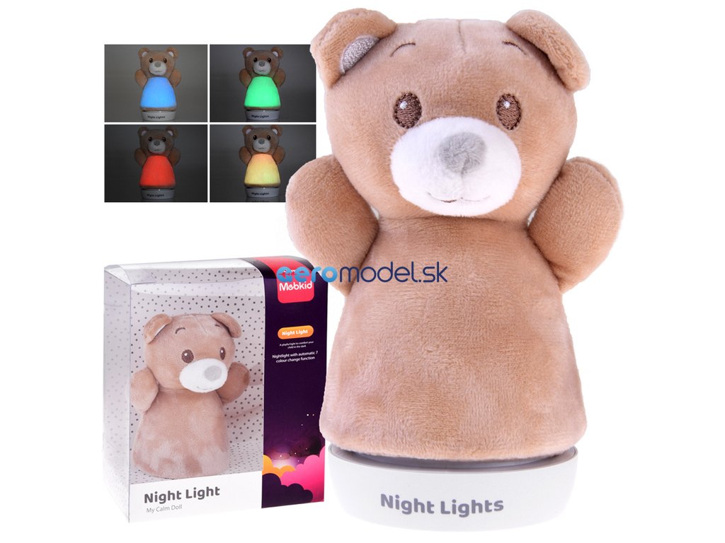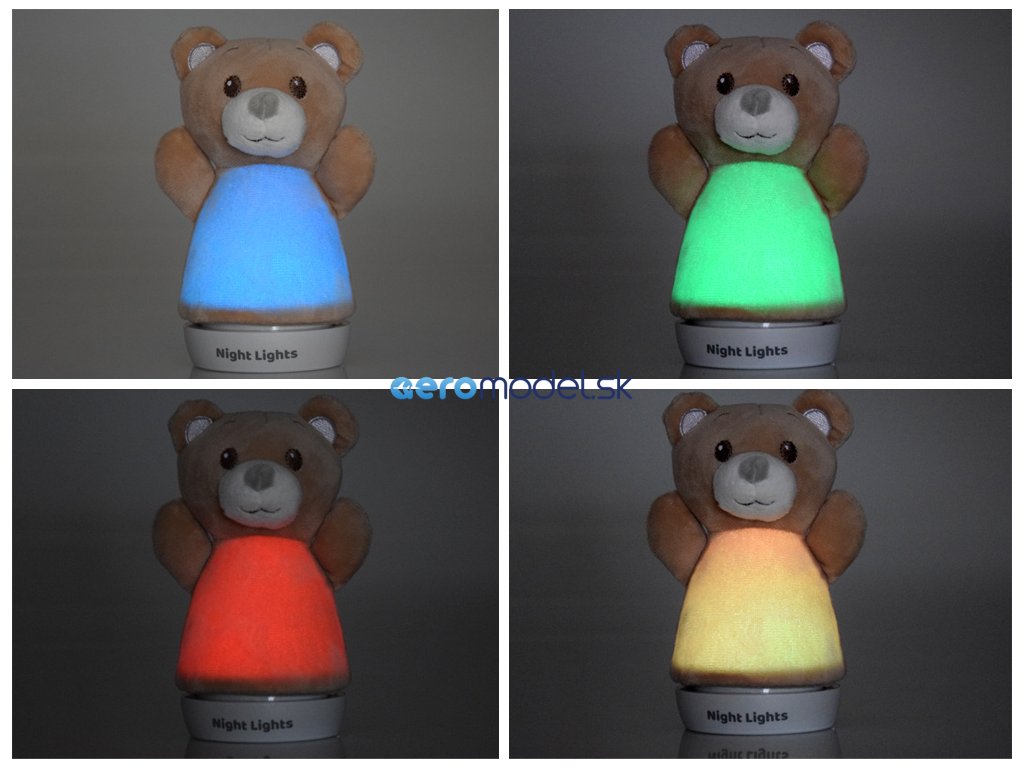 Lampa je zdobená mäkkým materiálom, má mäkké labky a hlavu a má plochý podstavec, takže ju môžete umiestniť kamkoľvek. Lampa medvedíka počas prevádzky mení farby na modro-zeleno-červeno-žltú, vďaka čomu je veľmi atraktívna. Puzdro s medvedíkom sa dá z lampy samozrejme kedykoľvek odňať, či už na umývanie, alebo sa dá použiť aj ako bábka na hranie. Medvedia lampa bude okrem funkcie osvetlenia aj očarujúcou dekoráciou každej detskej izby, žiadne strachy ani tmavé príšery už dieťa nevystrašia, keď bude stáť na stráži svietiaci medvedík.