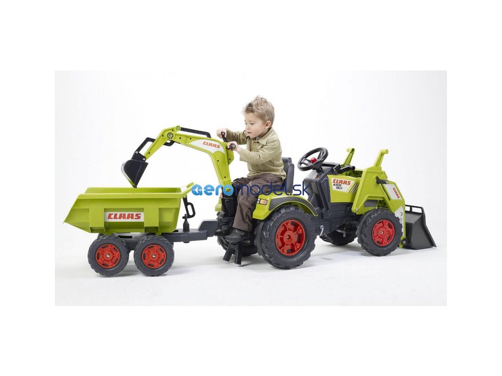 FALK - Šlapací traktor Claas Axos s nakladačem, rypadlem a vlečkou