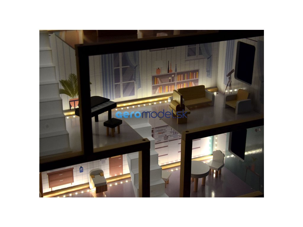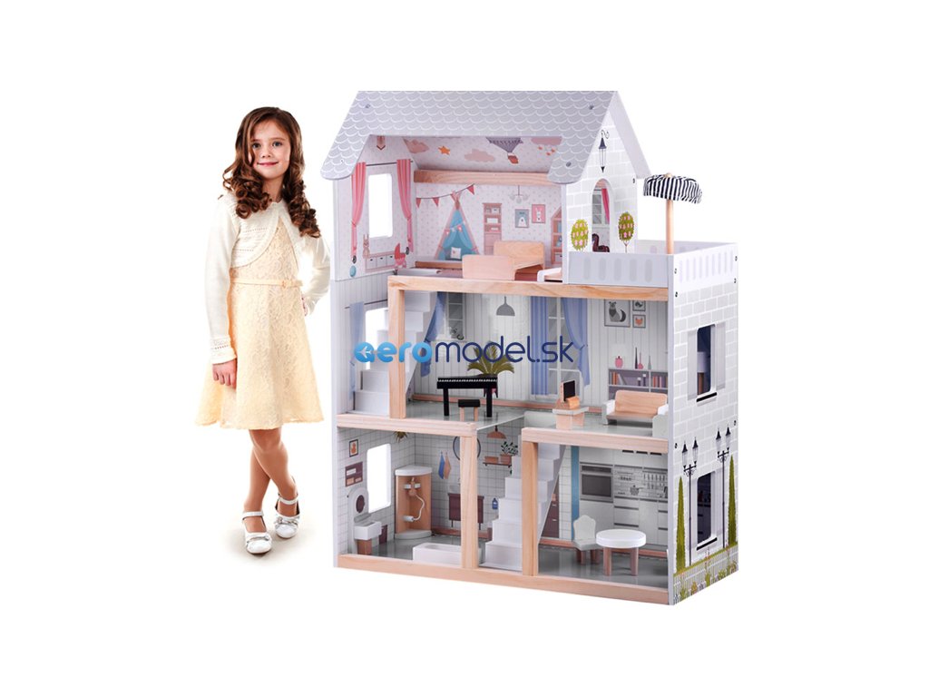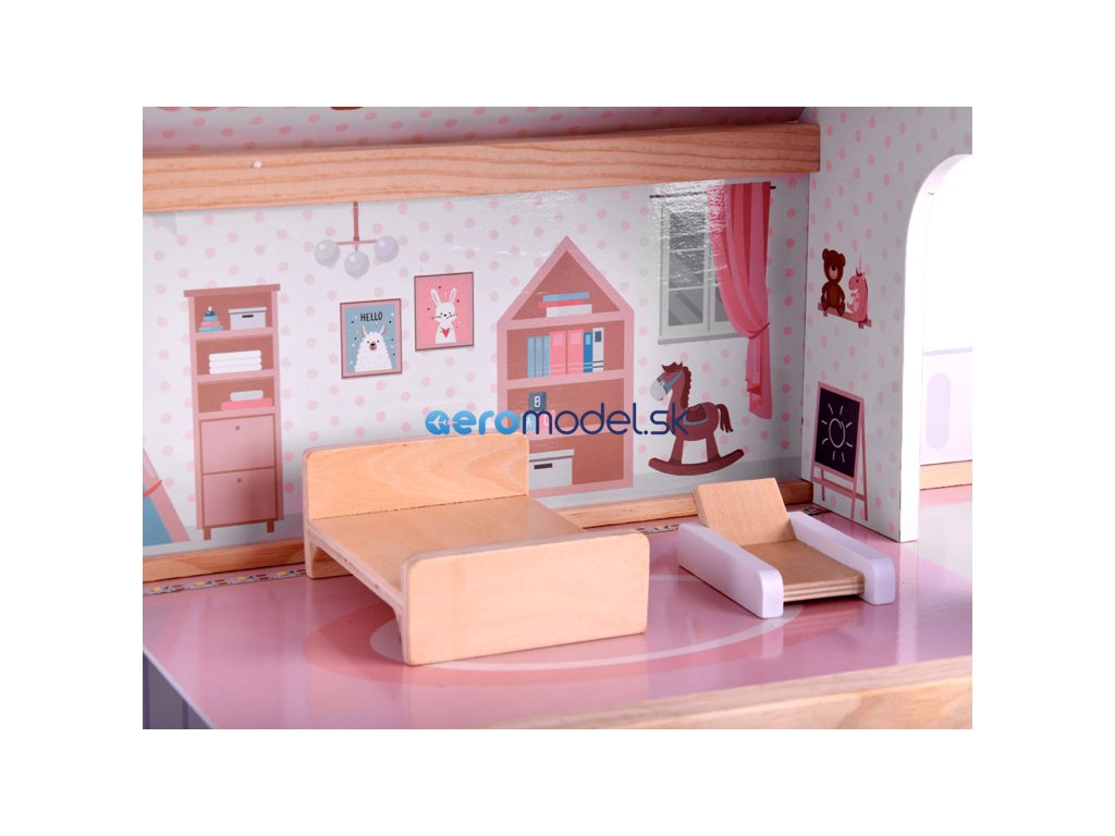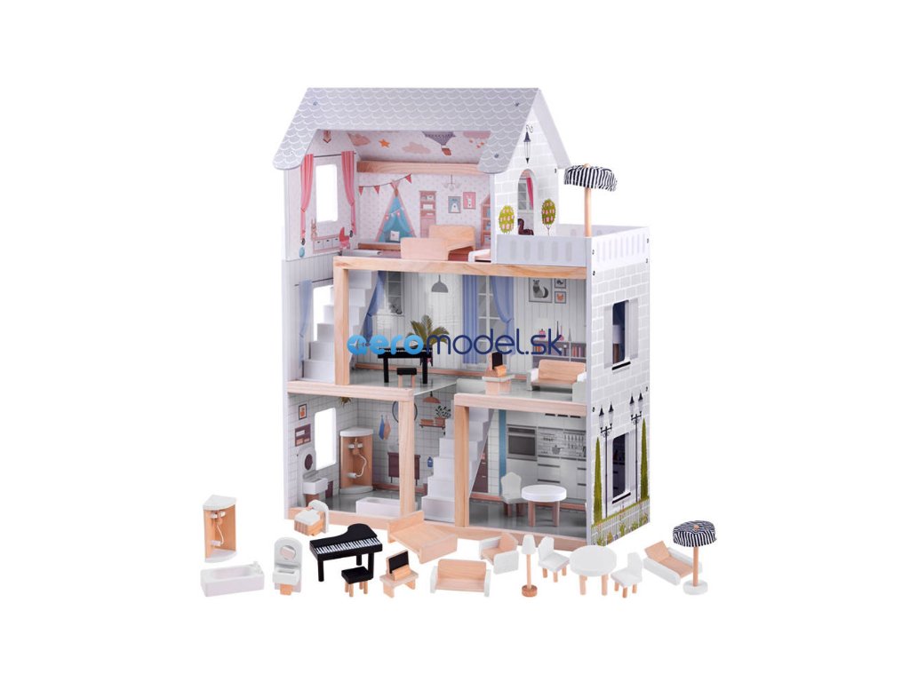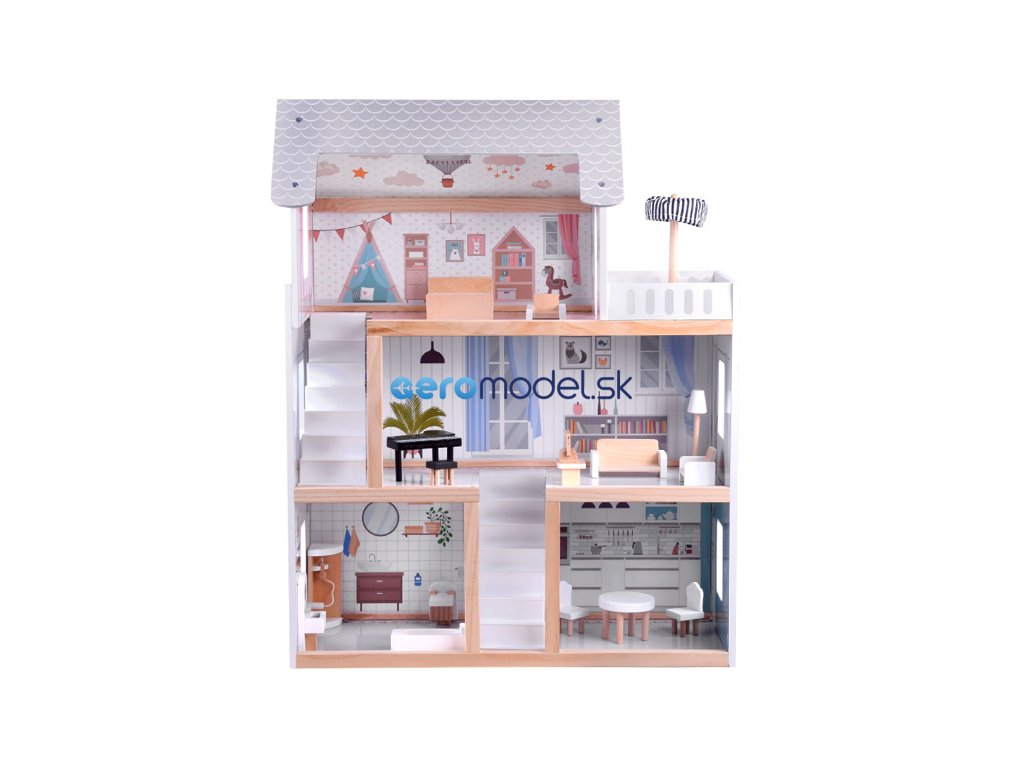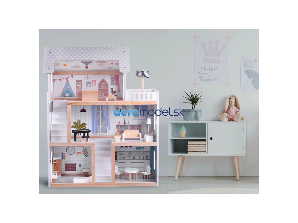 Každý zariadený elegantným a štýlovým spôsobom. Domček pre bábiky je vybavený všetkým potrebným nábytkom pre pohodlné fungovanie.