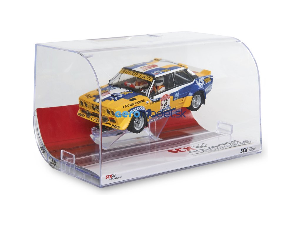 Dráhové autíčko SCX Advance Abarth 131 M. Alen v měřítku 1:32, verze 2.0, pro digitální autodráhy SCX Advance. Autíčko je vybaveno LED osvětlením. Na podvozku se nachází přepínač digital / analog - autíčko lze tedy používat na digitální autodráze SCX Advance i na analogové autodráze SCX Classic.