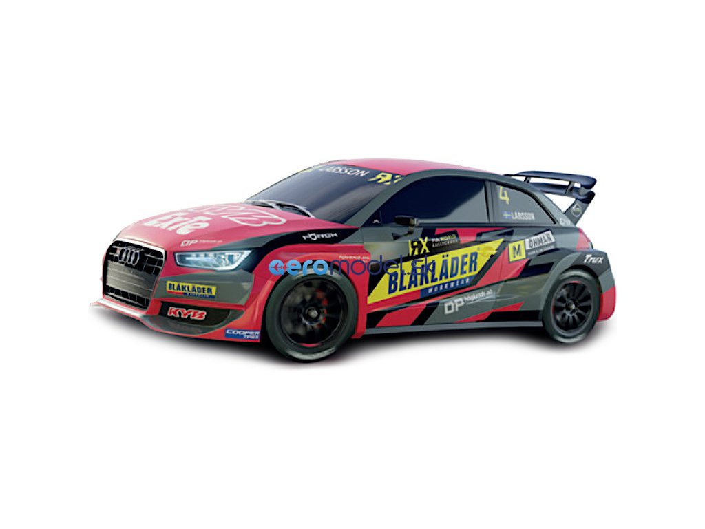 Dráhové autíčko SCX Advance Audi S1 RX - Blaklader v měřítku 1:32, verze 2.0, pro digitální autodráhy SCX Advance. Autíčko je vybaveno LED osvětlením. Na podvozku se nachází přepínač digital / analog - autíčko lze tedy používat na digitální autodráze SCX Advance i na analogové autodráze SCX Original.