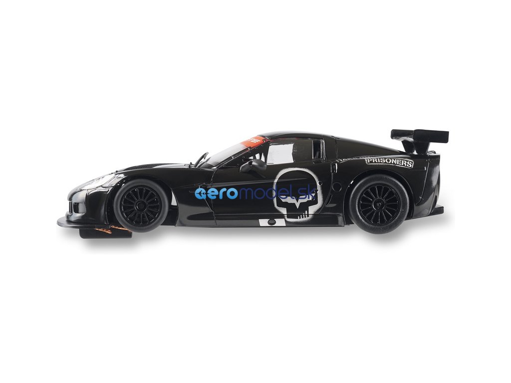 Dráhové autíčko SCX Classic Corvette C6R Skull v měřítku 1:32, pro analogové autodráhy SCX Classic. Autíčko je vybaveno LED světly.