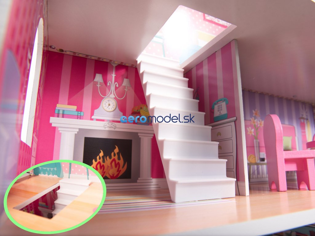 LED OSVETLENIE - dom je vybavený efektívnym LED osvetlením, ktoré nielen skvele vyzerá, ale môže fungovať aj ako nočné svetlo. Svietidlá sú pripevnené k samolepiacej páske, ktorá sa jednoducho nalepí na stropy a steny domu. Osvetlenie je možné ľubovoľne zafixovať. Funguje na AA batérie.