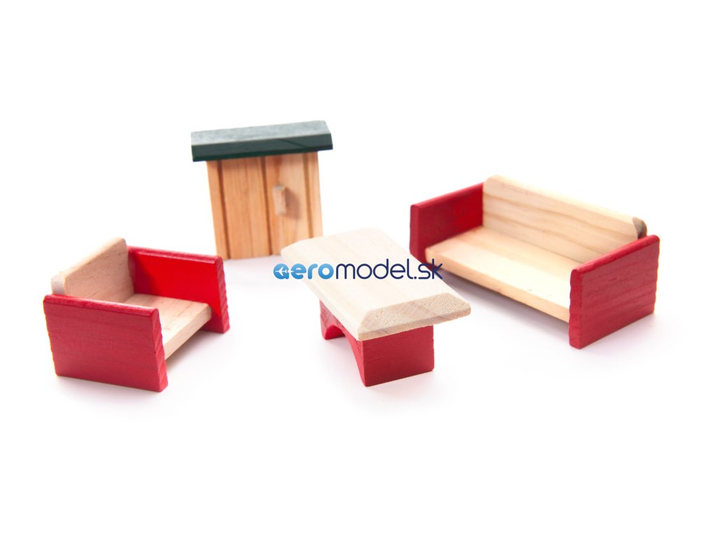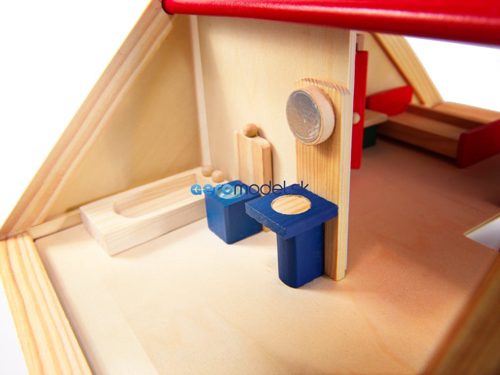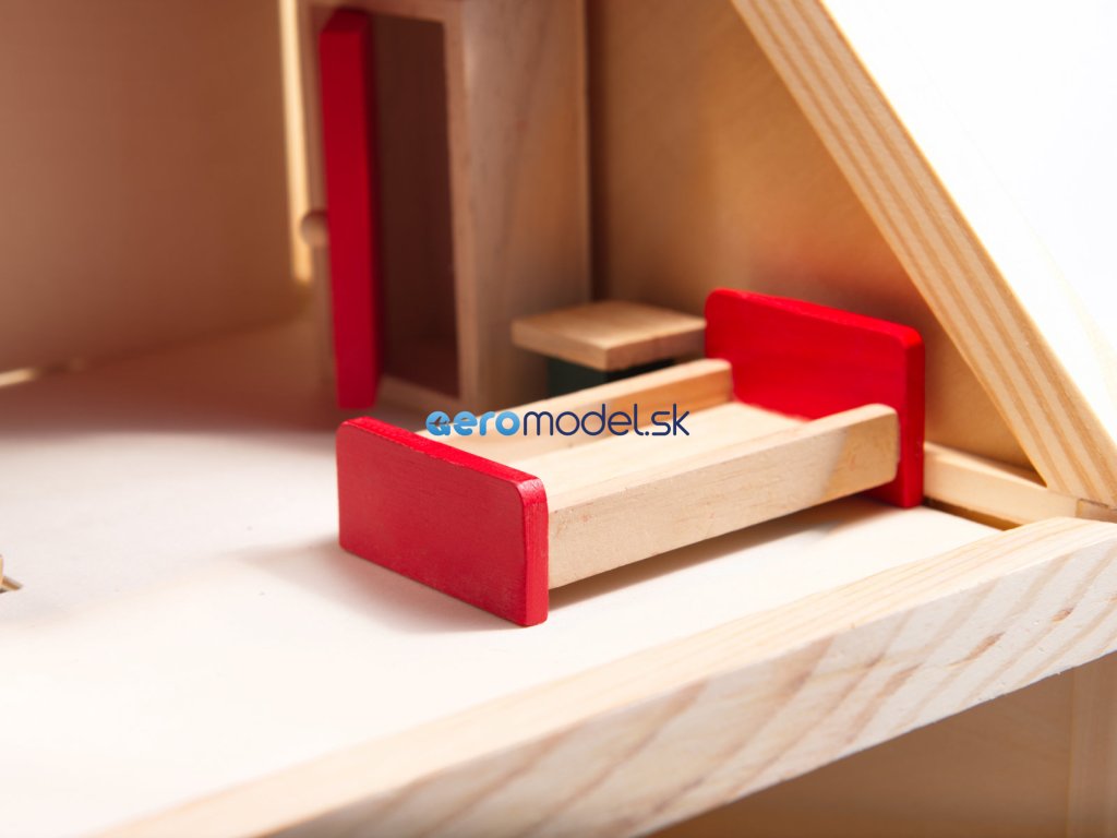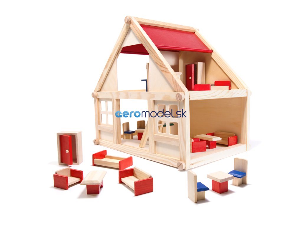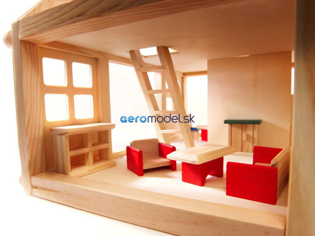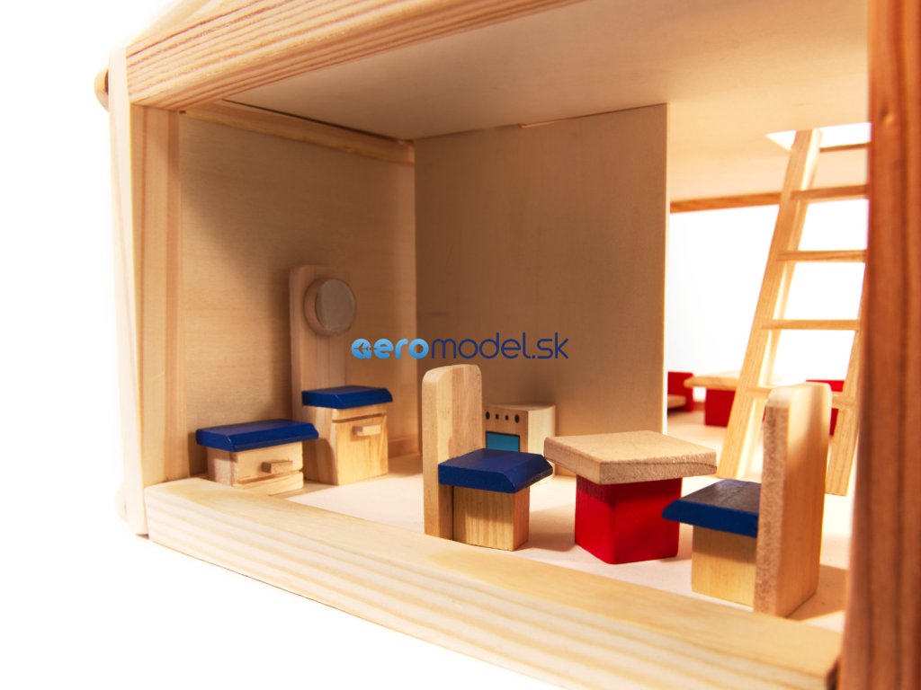 Domček je kompletne vybavený. Sada obsahuje krásny drevený nábytok, ktorý bude dokonalým doplnkom každej miestnosti v dome.