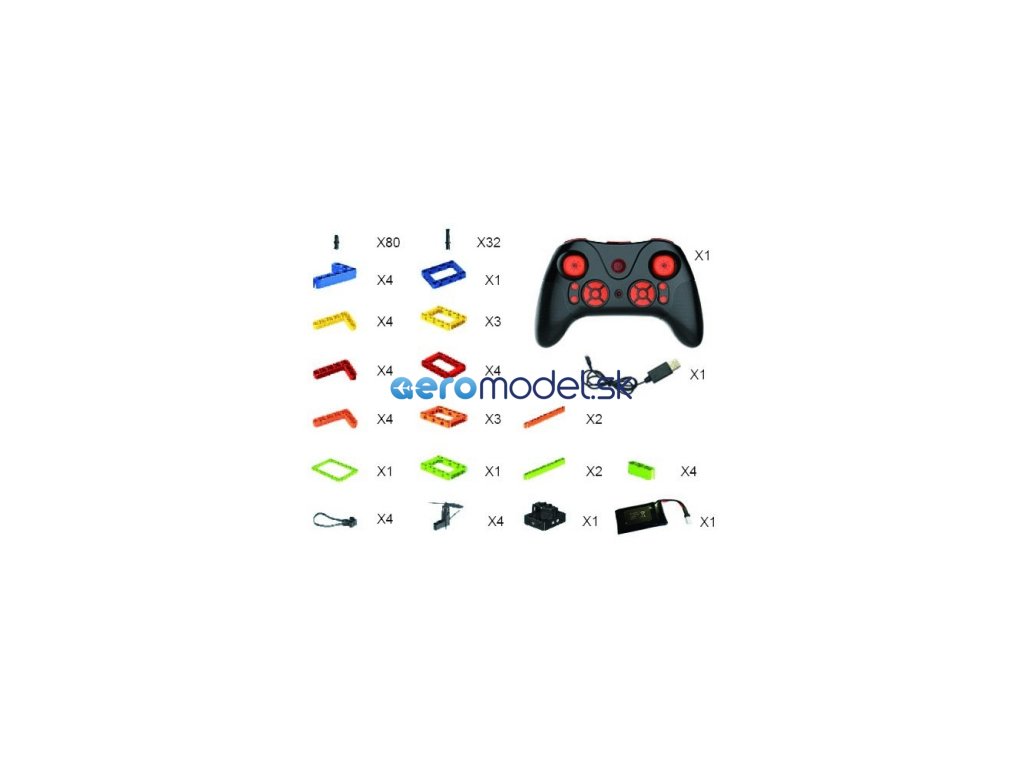 SkyWatcher 5v1 DIY Block Dron od DF Models je sada kvadrokoptéry vyrobená zo stavebných blokov. Modrý základný model je už predmontovaný. Ostatné varianty, ktoré sú všetky farebne odlíšené, je možné ľahko zostaviť. Na to je potrebné použiť el. súčiastky (čiernej časti) modrého modelu. To vám umožní zostaviť päť rôznych modelov z farebných dielov. Ale to nestačí ... model ponúka nespočet možností pre vlastný dizajn. Upínacie bloky sú kompatibilné s takmer všetkými bežnými systémami stavebníc, ako napr. lego.