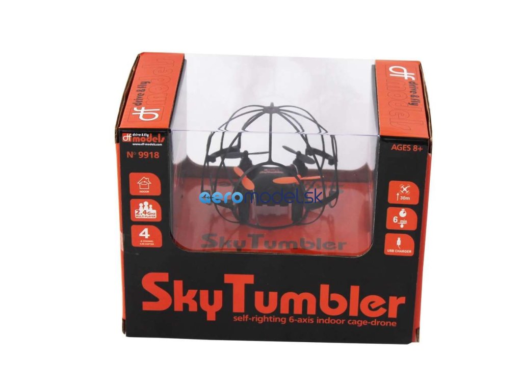 Sky Tumbler je model s veľkosťou približne 6,5 cm a je inštalovaný v ochrannej klietke. Táto klietka zabraňuje poškodeniu spôsobenému stykom s prekážkami (stenami atď.). Model je tak dobre chránený a dokonale vhodný pre letové prevádzky v kanceláriách, obytných miestnostiach a pod. Pre skúsenejších pilotov je klietka odnímateľná.
