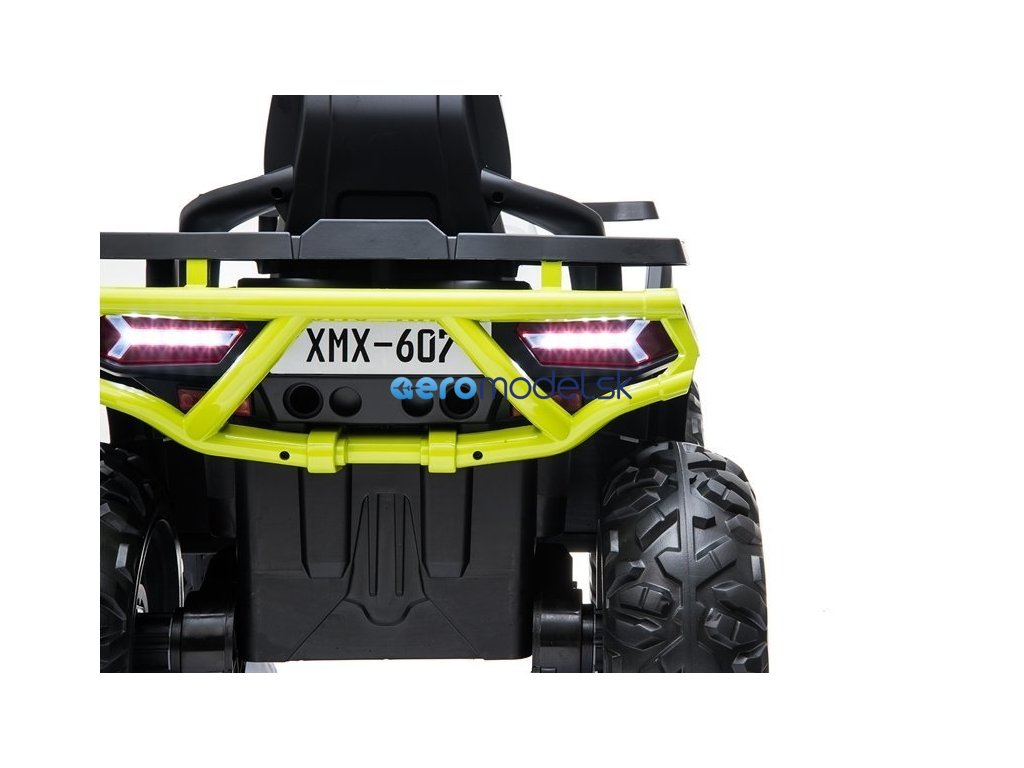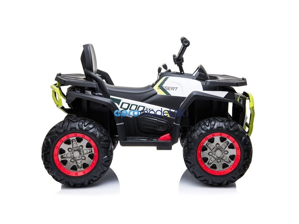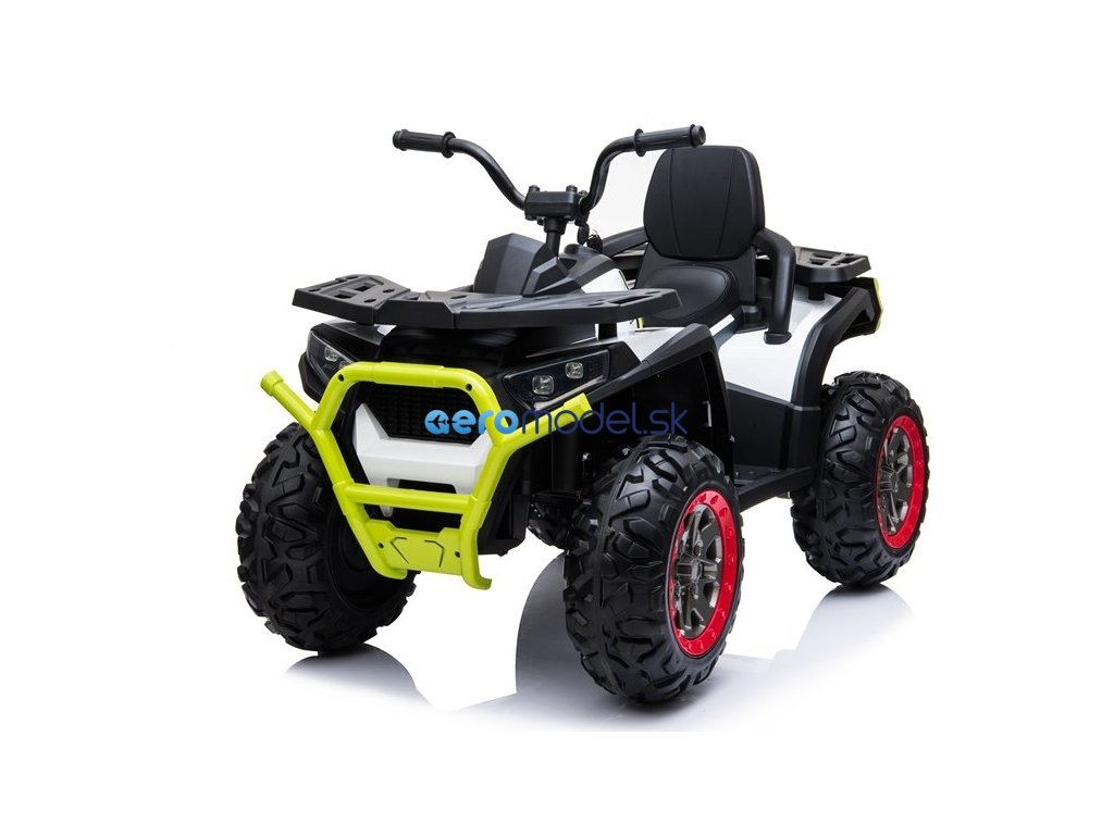 Detská elektrická štvorkolka v bielej farbe obsahuje 4x45W motory, vďaka ktorým vyvinie rýchlosť 3-8km/h. O pohon vpred a vzad sa stará 12V akumulátor s kapacitou 10Ah. Maximálna nosnosť štvorkolky je 50 kilogramov. O bezpečnosť sa stará kvalitná konštrukcia, bezpečnostná brzda, ktorá sa aktivuje okamžite po uvoľnení plynového pedálu, ale aj lepšia stabilita oproti elektrickým motorkám. Akumulátor má dostatočnú kapacitu na maximálne hodinu jazdy. Sedadlo vyrobené z eko-kože poskytne dieťatu ideálny komfort. K autu je dodávané diaľkové ovládanie, 2 x kľúč. Elektrické autíčko disponuje možnosťou prepínania 2 rýchlosti ( rýchlo / pomaly ), možné nastavenie pohonu 4WD alebo 2WD pomocou tlačítka.