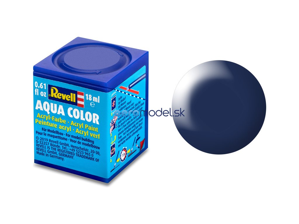 Akrylová farba Revell 36350 na použitie pri výrobe modelov. Odtieň číslo 350 - tmavomodrá polomatná farba. Obsah 18 ml.