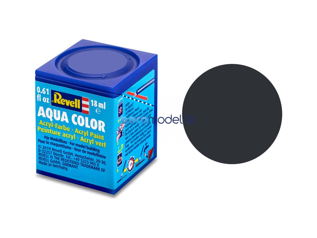 Akrylová farba Revell 36109 na použitie pri výrobe modelov. Odtieň č. 9 - antracitovo sivá matná. Obsah 18 ml.