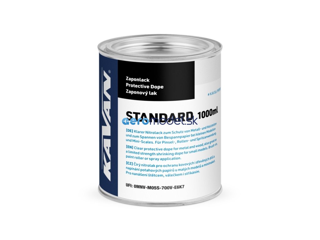 Použití: Lak dle potřeby nařeďte KAVAN Ředidlem STANDARD; na potah nanášejte měkkým plochým štětcem nebo válečkem. Naneste 2–4 vrstvy; nátěr vždy nechejte vyschnout nejméně 24 hodin a přebruste jemným brusným papírem 600–1000. Při použití na modelu se spalovacím motorem je nutno nanést vrchní krycí vrstvu odolnou vůči palivu (např. KAV56.9990 KAVAN krycí lak POLY, 5MA4401 RC Color bezbarvý lak ve spreji).