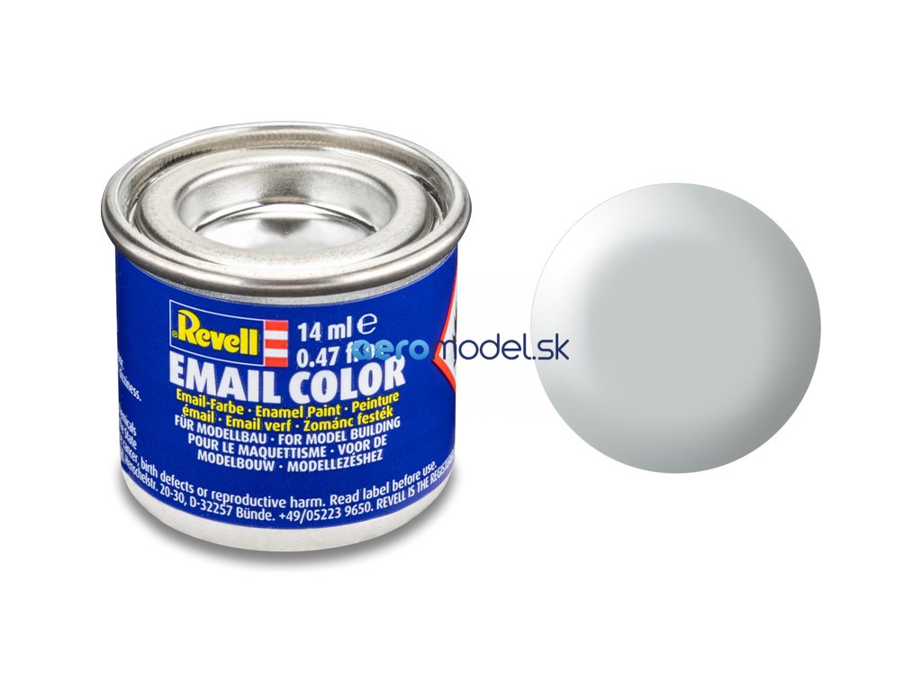 Syntetická (emailová) farba Revell 32371 na použitie v modelárstve. Odtieň č. 371 - svetlosivý polomatný. Obsah 14 ml.