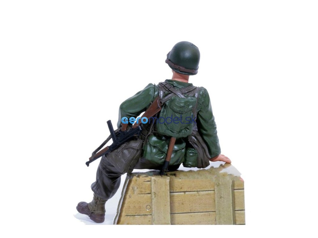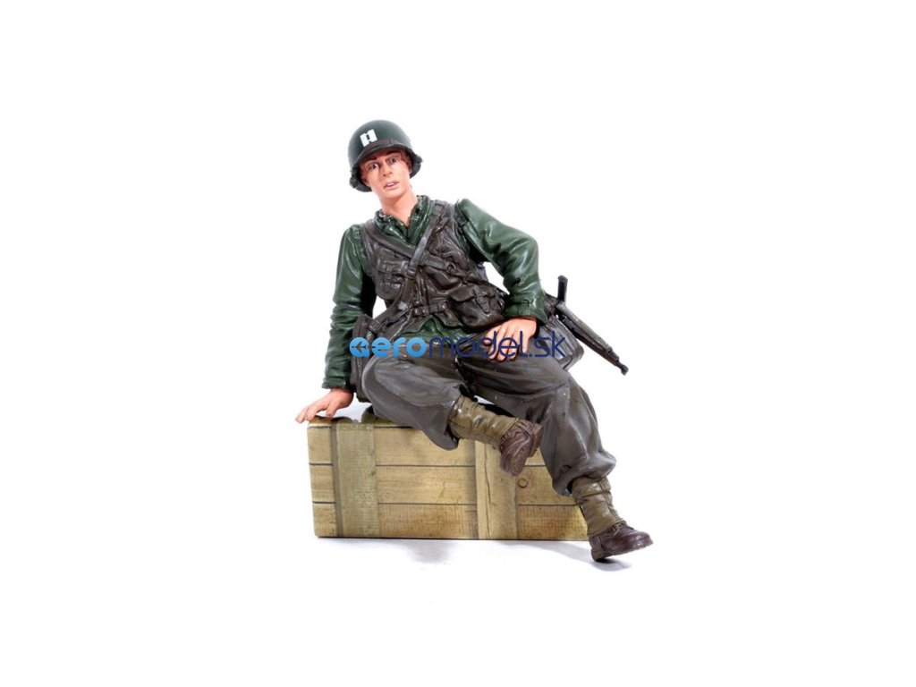 1/16 figurka sedícího kapitána US pěchoty z 2 sv. války, ručně malovaný