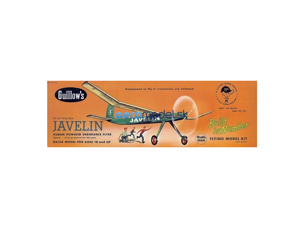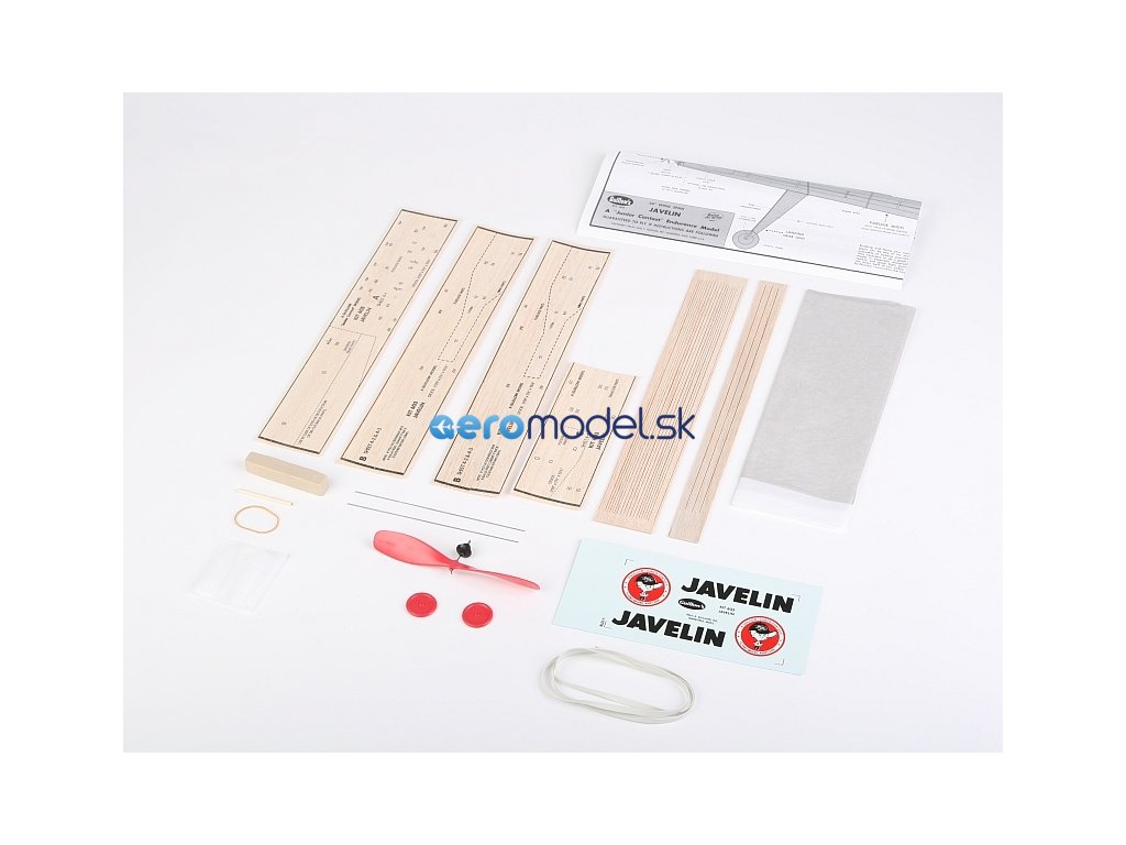 Hornoplošník Javelin představuje ideální první krok pro modeláře, který chce začít stavět minimakety poháněné gumovým svazkem (jako vůbec model pro získání základních zkušeností s klasickou stavbou doporučujeme nejprve postavit např. některý z větroňů A3 nebo A1, jako jsou naše Sojka, Sova, Jiskra nebo Olympic). Naučíte se stavět "žbrdličkovou" kostru trupu i křídla, potahovat papírem - prostě všechny základní dovednosti klasické modelařiny. Přitom té stavby není mnoho, nečekají vás stovky pracovních hodin v dílně, díky vysoce předpracovaným dílům to jde jako po másle. Navíc o postupu stavby není nejmenších pochyb - staví se po číslech! Nejprve díl č. 1, potom č. 2, č. 3...