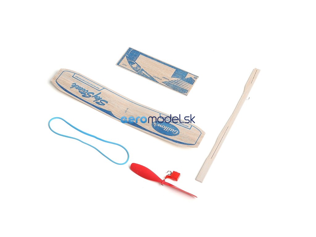 Stavebnice obsahuje: trup, vyseknuté a potištěné křídlo již vytvarované do vzepětí, předseknuté ocasní plochy a kabinu, vrtuli s hlavicí a gumový svazek (guma 3x1).