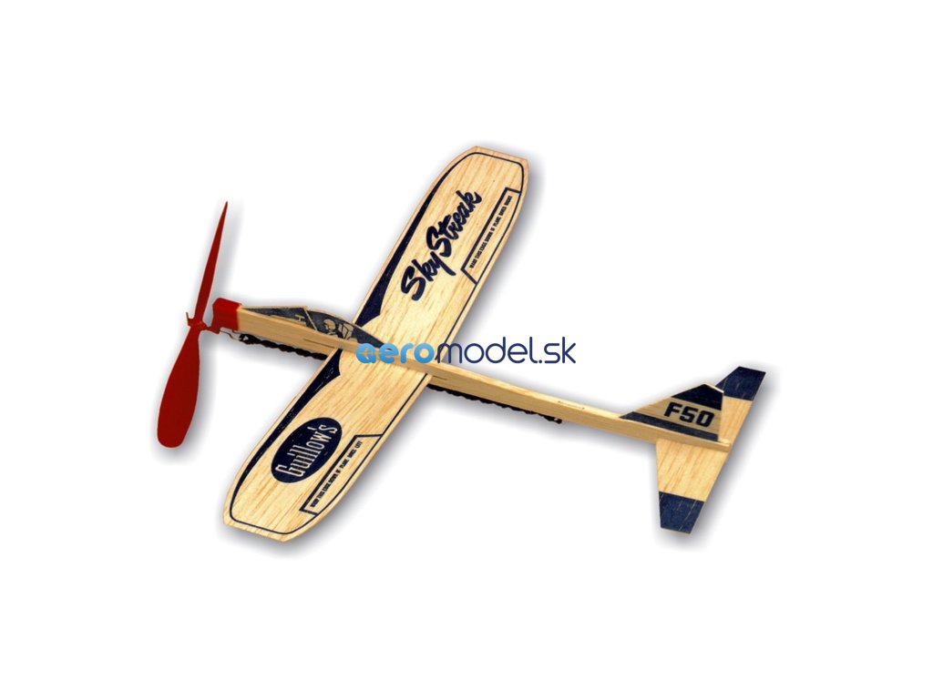 Celobalsový gumáček s odnímatelným křídlem a ocasními plochami. Model můžete sestavit pouhým zasunutím do vyfrézovaných výřezů a drážek v trupu; pro větší výdrž a stálost nastavení je možné díly modelu slepit acetonovým lepidlem (Kanagom, L-510, UHU-Hart aj.) nebo řídkým vteřinovým lepidlem.