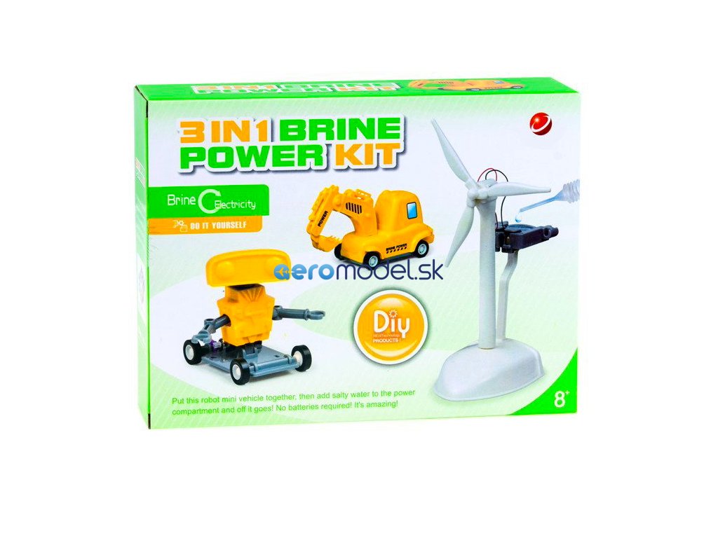 Sada 3 v 1 je vzdelávacia hračka pre vlastnú montáž, ktorá je poháňaná slnečným žiarením alebo slanou vodou a učí, ako využívať rôzne zdroje energie.