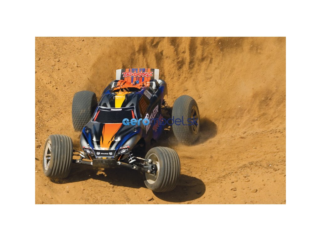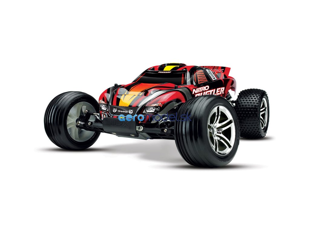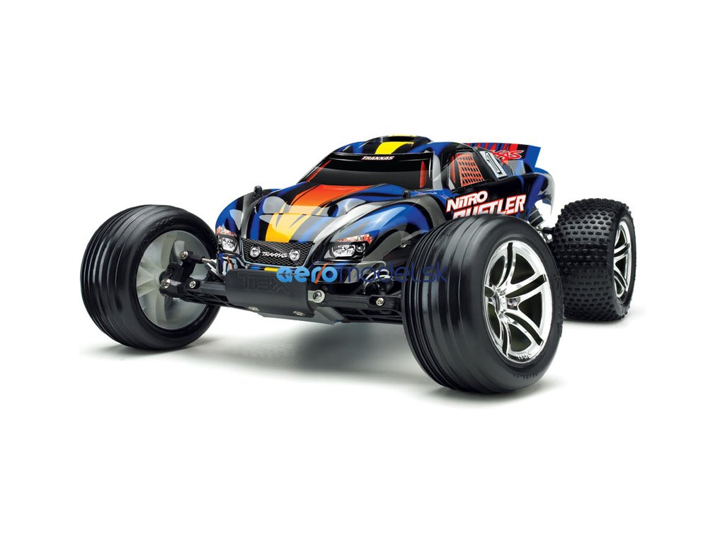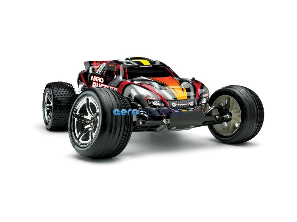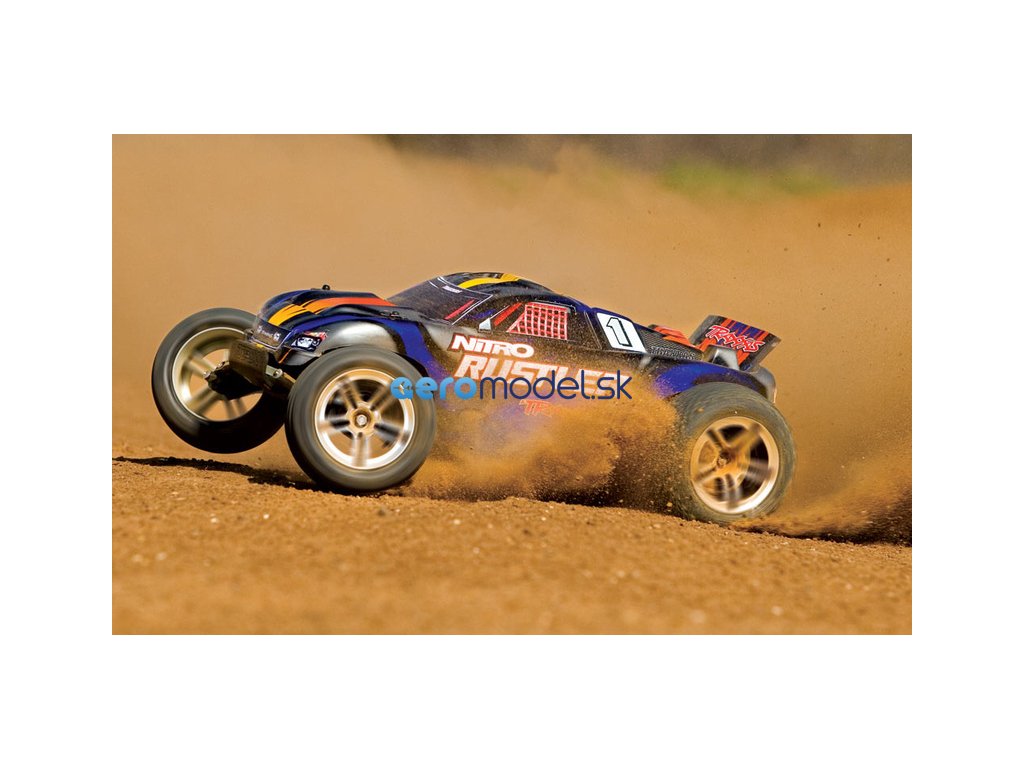 RC model auta Traxxas Rustler Nitro je výkonná 2WD Truggy. Rustler je osazen osvědčeným závodním motorem TRX 2.5 a díky tomu dokáže zvládnout rychlost až 80 km/hod! Motor TRX 2.5 udělí autu brutální zrychlení, které oceníte při výjezdu ze zatáčky, na technických tratích stejně jako na dlouhých rovinkách. Zcela nový design karosérie podtrhuje jeho ladné linie se zdařilou dravou grafikou, nízko položené těžiště dává RC autu skvělé jízdní vlastnosti.