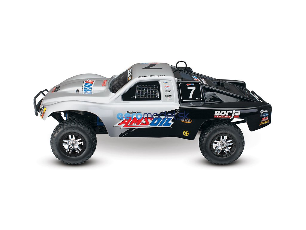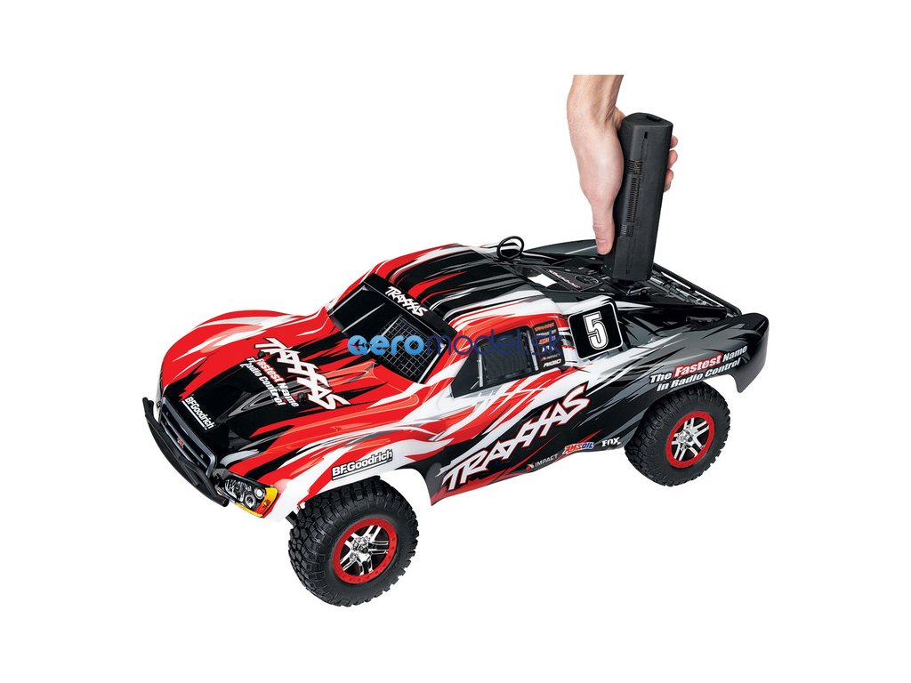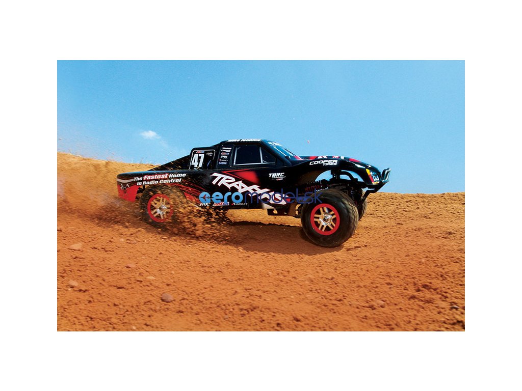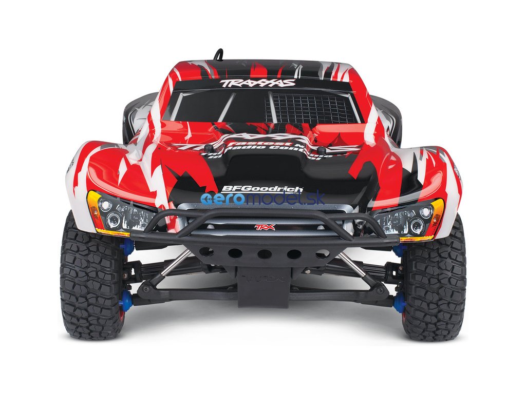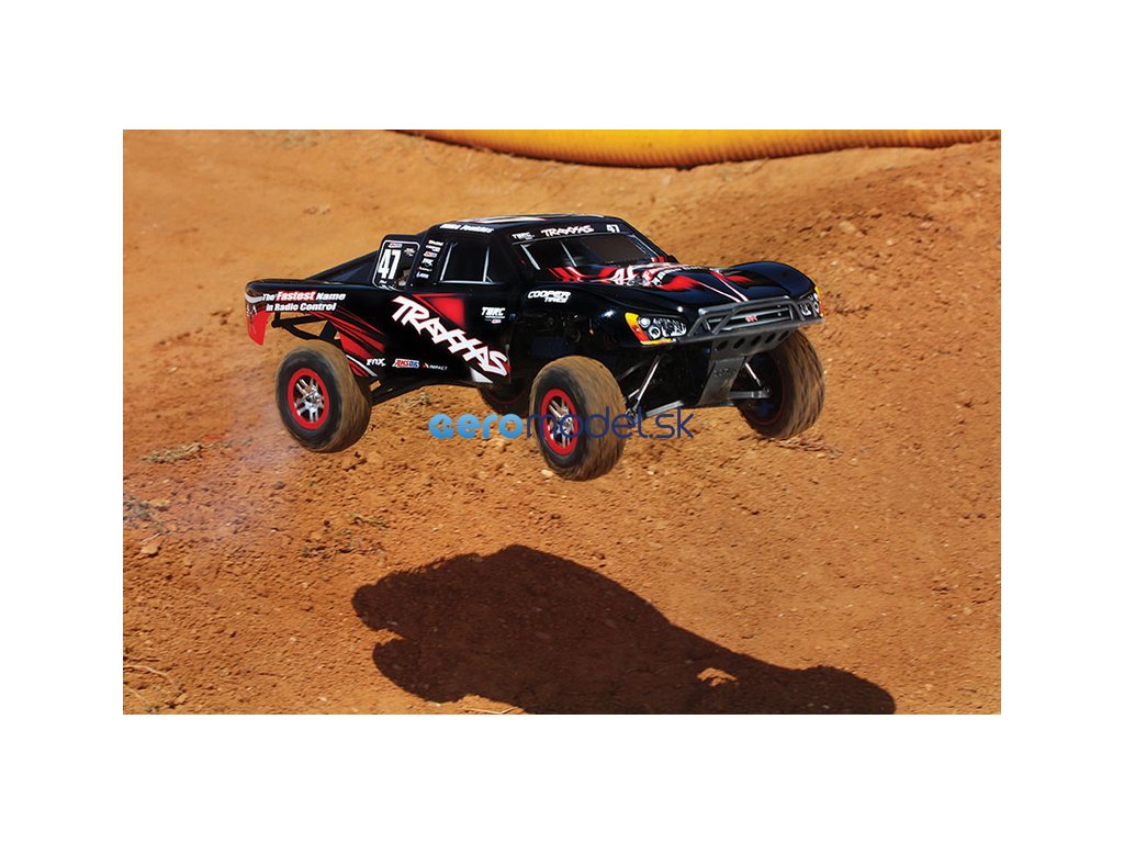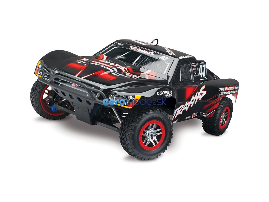 Závodný RC model auta na krátke trate Truck Slayer Pro 4x4 je dokonalým nástrojom na víťazstvo. Poháňa ho výkonný pretekársky motor TRX 3.3 s ladeným výfukom, pevný podvozok je vyrobený z 3 mm hrubého modro eloxovaného hliníka 6061-T6. Terénne pneumatiky poskytujú maximálnu priľnavosť v teréne. RC auto Traxxas Slayer má vysokú svetlú výšku, ktorá mu nebráni prekonať ani tie najväčšie nerovnosti. Slayer Pro má neuveriteľnú akceleráciu a skvelú ovládateľnosť na trati vďaka pohonu 4WD a veľkému rázvoru. Môže dosiahnuť rýchlosť až 80 km/h!