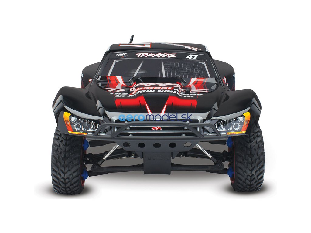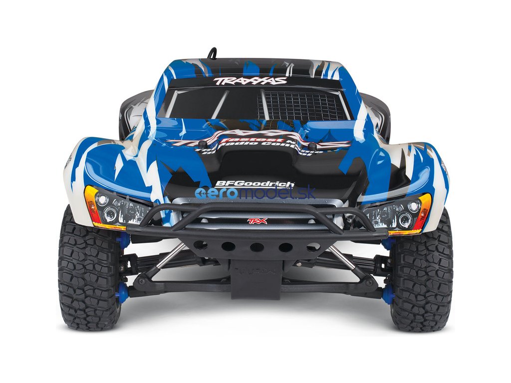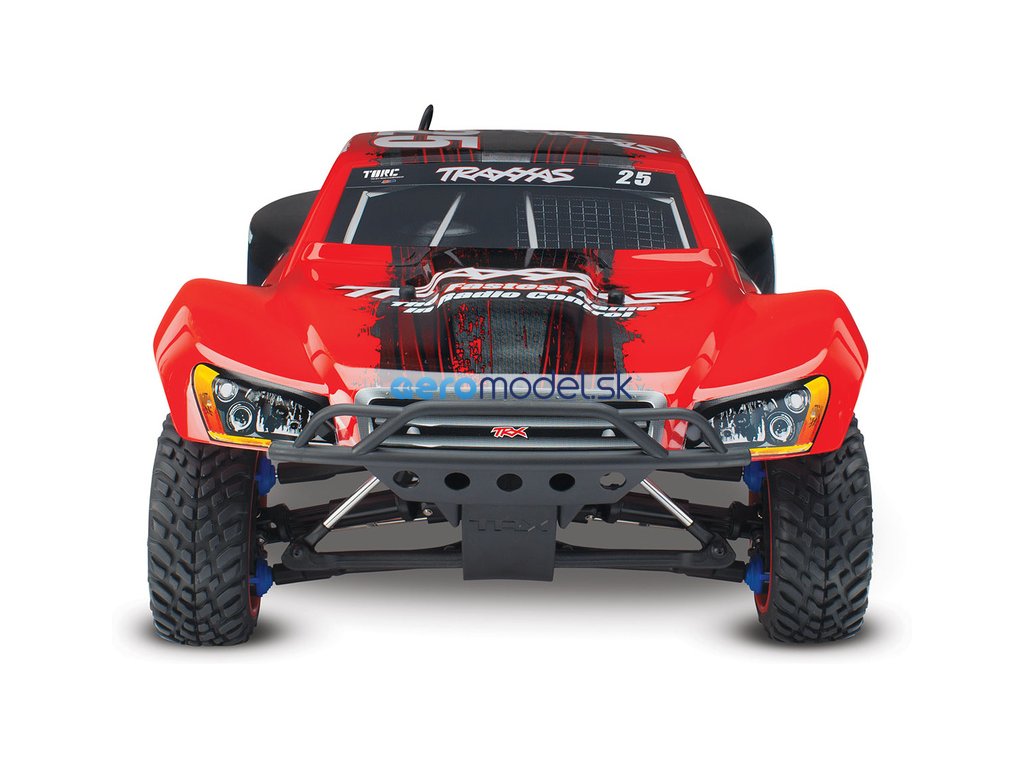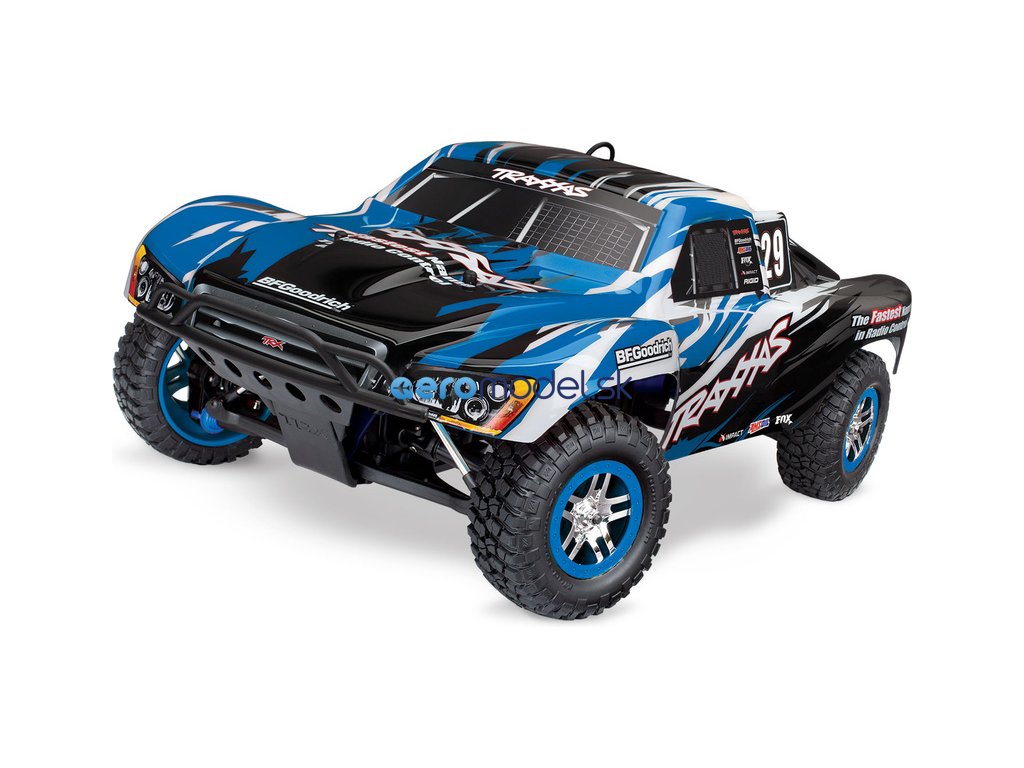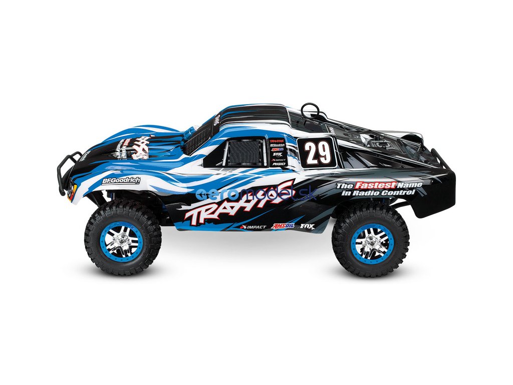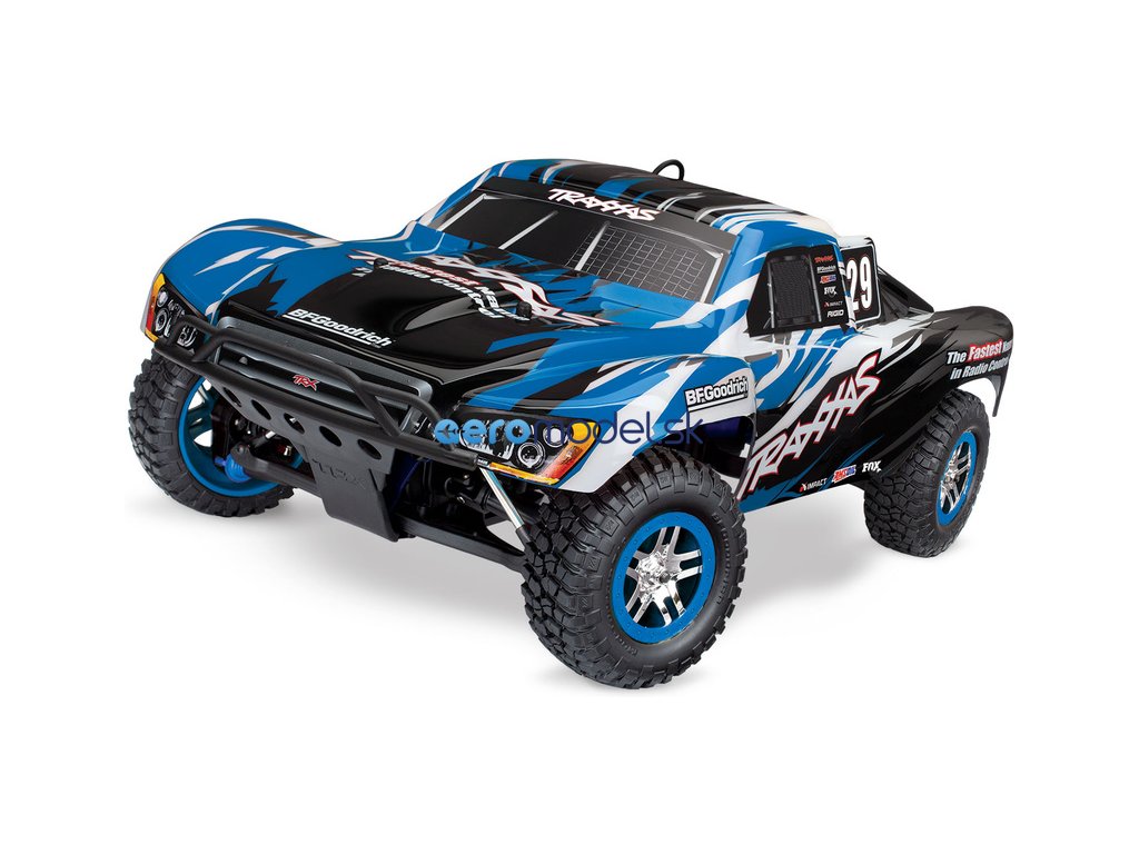 RC model pretekárskeho auta Traxxas Slayer Pro 4x4 Short Course je dokonalým nástrojom na víťazstvo. Výkonný pretekársky motor TRX 3.3, ladený výfuk, pevný podvozok je vyrobený z 3 mm hrubého modro eloxovaného hliníka 6061-T6. Novinka so súpravou Traxxas TQi RC a stabilizáciou Traxxas TSM.