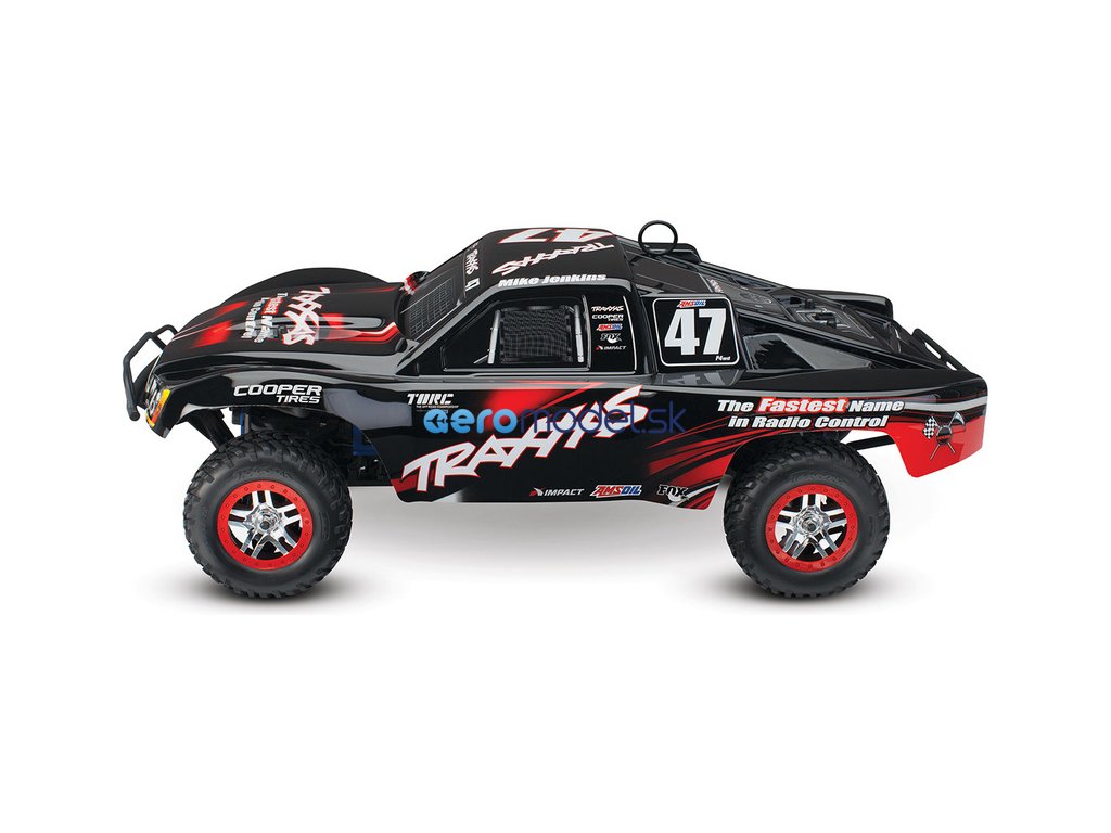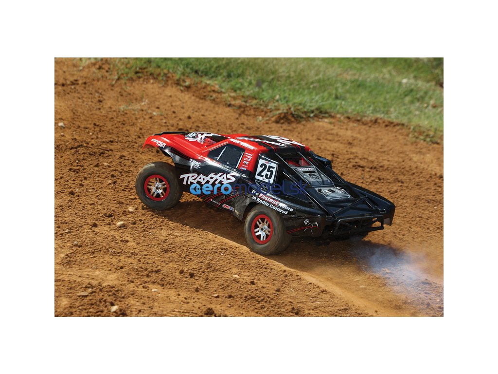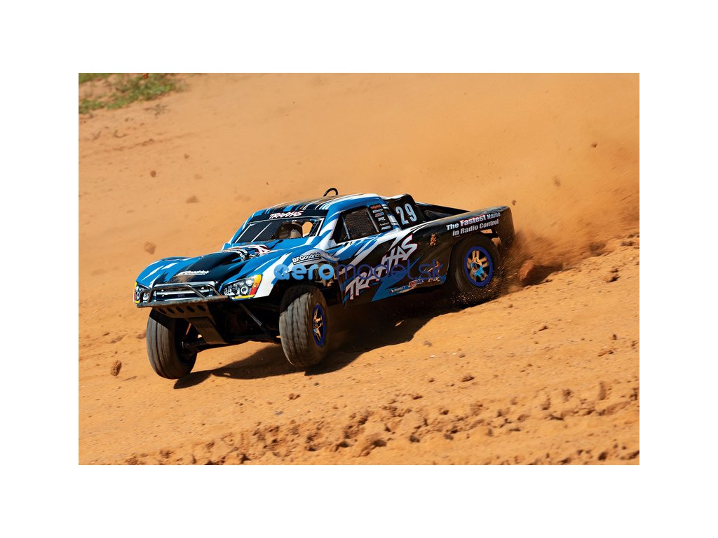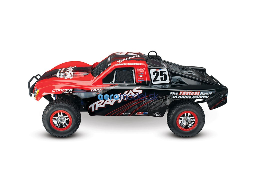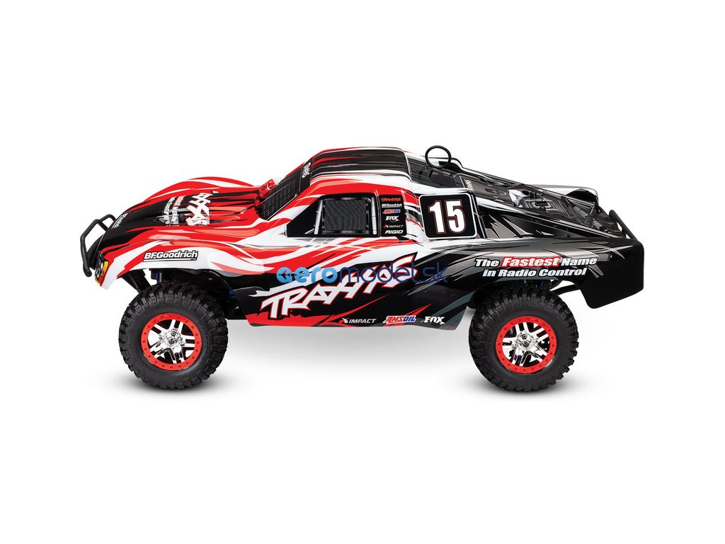 RC model pretekárskeho auta Traxxas Slayer Pro 4x4 Short Course je dokonalým nástrojom na víťazstvo. Výkonný pretekársky motor TRX 3.3, ladený výfuk, pevný podvozok je vyrobený z 3 mm hrubého modro eloxovaného hliníka 6061-T6. Novinka so súpravou Traxxas TQi RC a stabilizáciou Traxxas TSM.