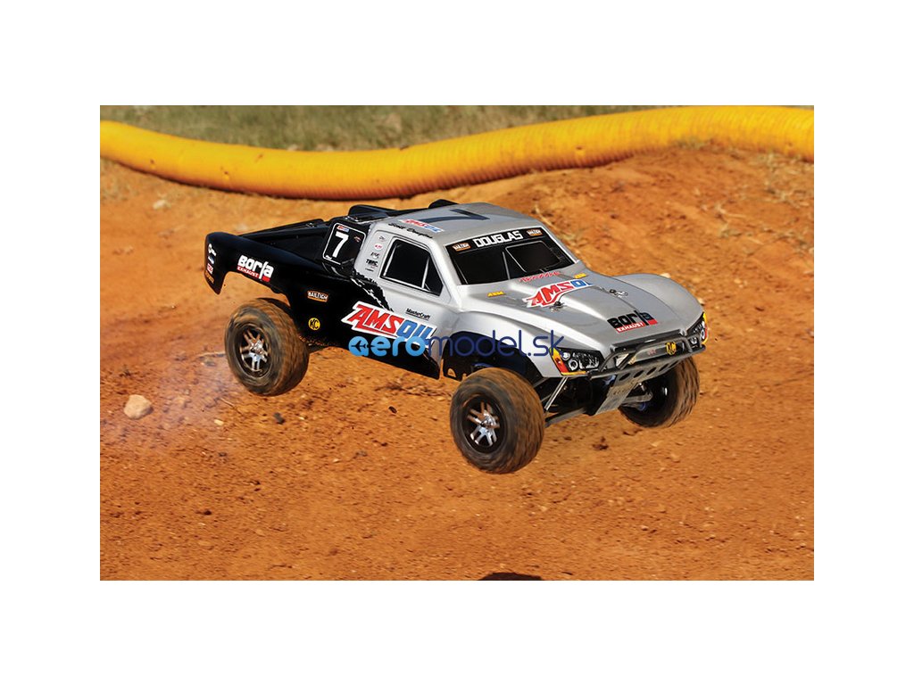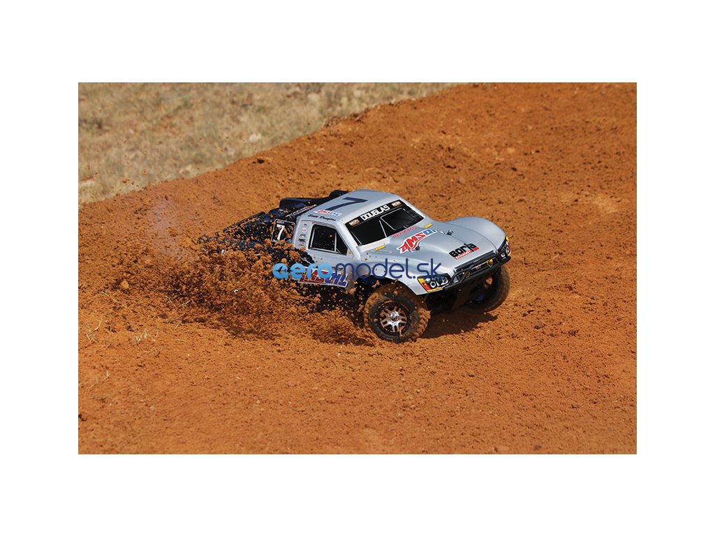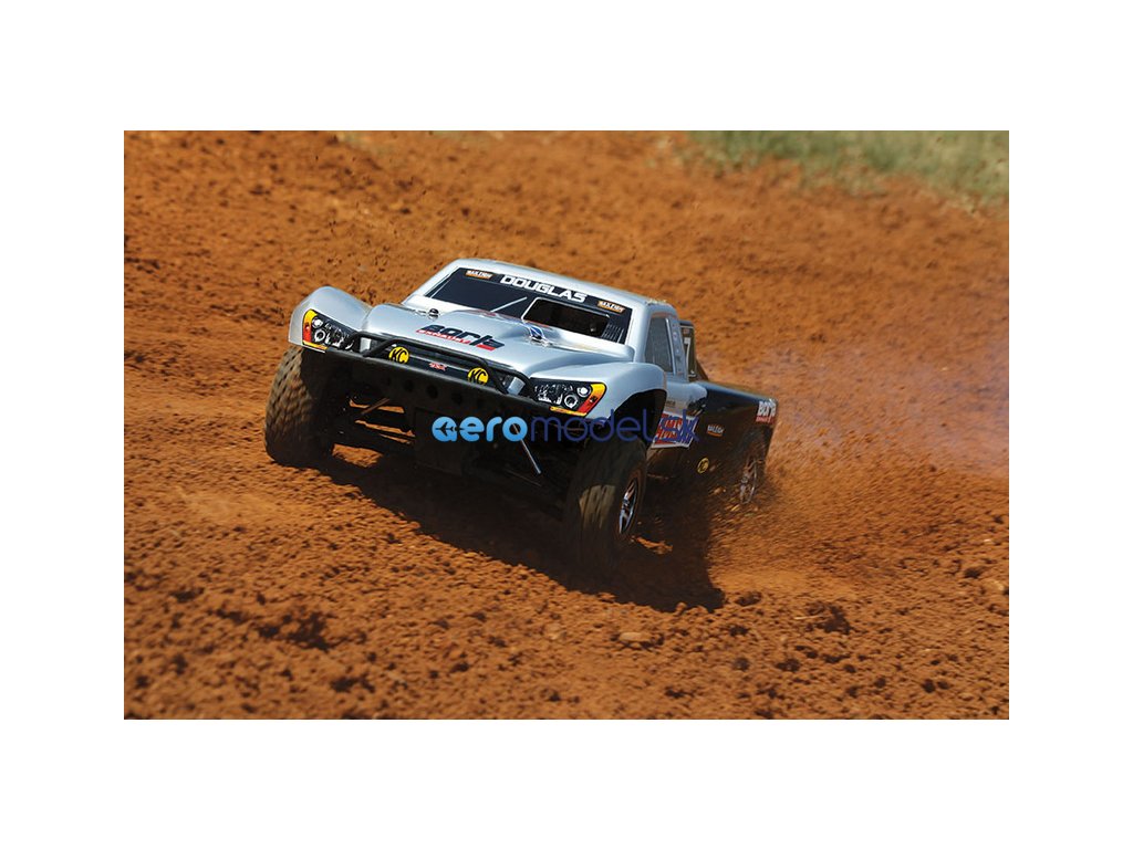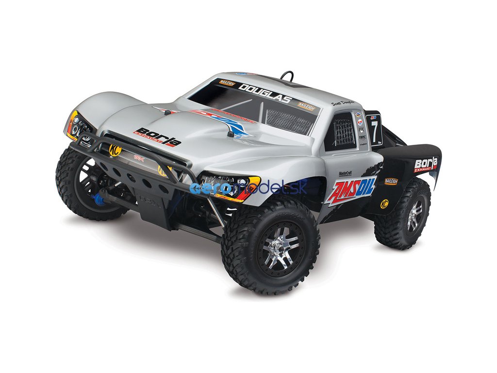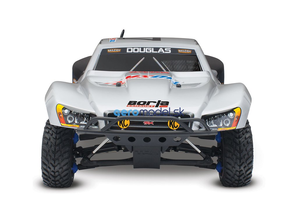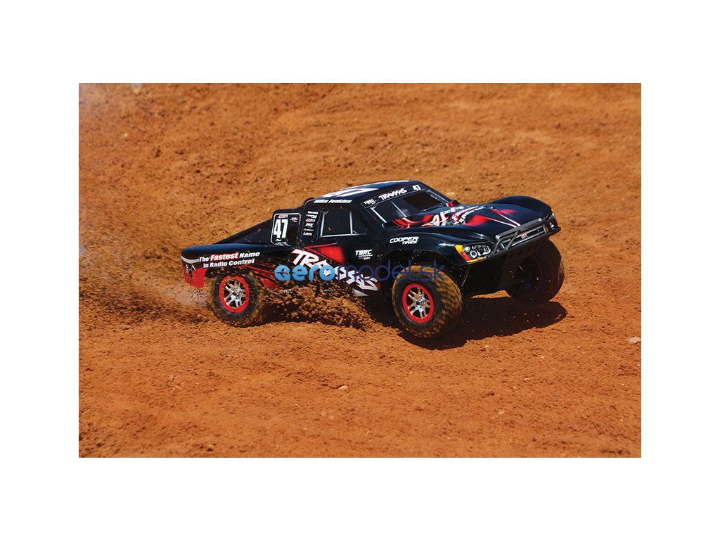 RC model pretekárskeho auta Traxxas Slayer Pro 4x4 Short Course je dokonalým nástrojom na víťazstvo. Výkonný pretekársky motor TRX 3.3, ladený výfuk, pevný podvozok je vyrobený z 3 mm hrubého modro eloxovaného hliníka 6061-T6. Novinka so súpravou Traxxas TQi RC a stabilizáciou Traxxas TSM.